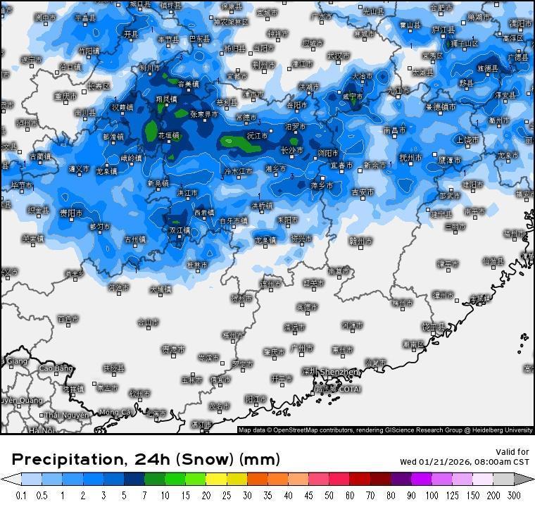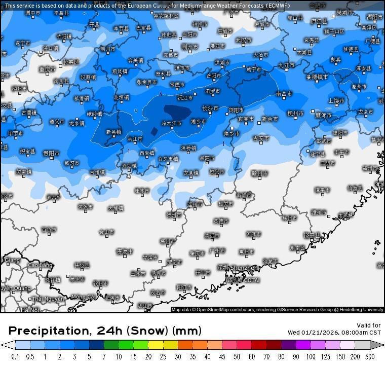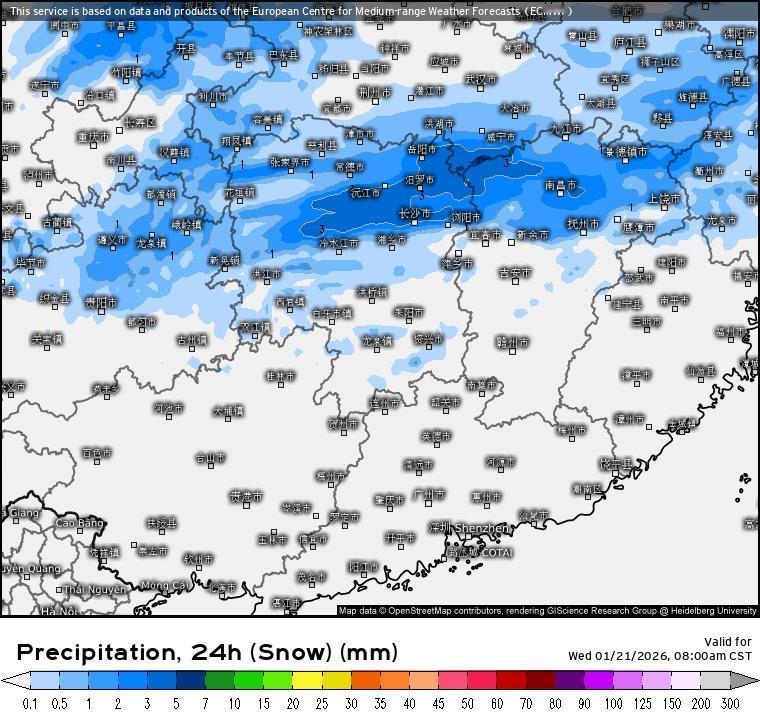 安徽 江苏附近的降雪带将逐渐南压,武汉 合肥 南京一带的较强降雪将在白天逐渐减弱直到结束。而随着寒潮的南下,整体水汽条件也会慢慢变差,雪区进入江南后强度会减弱,最强区可能会位于湖南附近,长沙在冻雨或冰粒后有望迎来中雪,南昌也能出现雨转雪。今天,杭州也可能会出现雨夹雪或雨转小雪,上海会有零星小雪。(weather爱好者)