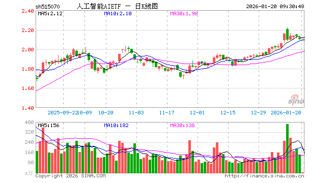 1月20日,人工智能AIETF(515070)开盘涨0.00%,报2.100元。人工智能AIETF(515070)重仓股方面,新易盛开盘跌0.41%,中际旭创涨0.00%,寒武纪跌0.19%,澜起科技跌0.68%,中科曙光跌0.04%,科大讯飞涨0.74%,豪威集团涨0.14%,海康威视涨0.16%,浪潮信息跌0.05%,金山办公涨0.87%。