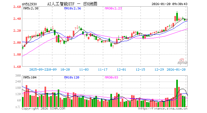 1月20日,AI人工智能ETF(512930)开盘涨0.08%,报2.363元。AI人工智能ETF(512930)重仓股方面,新易盛开盘跌0.41%,中际旭创涨0.00%,寒武纪跌0.19%,澜起科技跌0.68%,中科曙光跌0.04%,科大讯飞涨0.74%,豪威集团涨0.14%,海康威视涨0.16%,浪潮信息跌0.05%,金山办公涨0.87%。