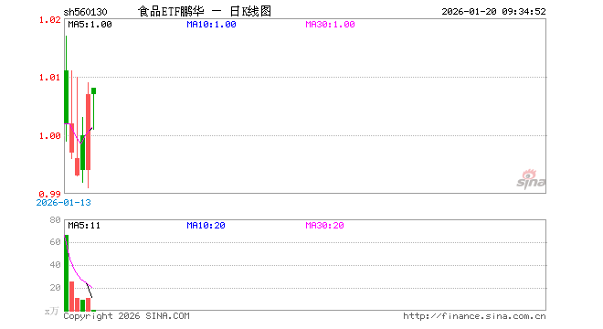 1月20日,食品ETF鹏华(560130)开盘涨0.10%,报1.008元。食品ETF鹏华(560130)重仓股方面,安记食品开盘跌1.17%,一鸣食品跌0.23%。