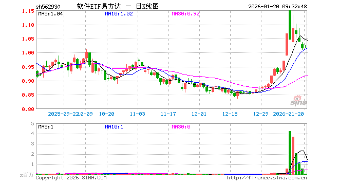 1月20日,软件ETF易方达(562930)开盘涨0.49%,报1.019元。软件ETF易方达(562930)重仓股方面,科大讯飞开盘涨0.74%,同花顺跌0.16%,金山办公涨0.87%,指南针跌0.82%,恒生电子涨1.00%,润和软件涨0.00%,三六零涨0.79%,拓维信息涨0.24%,用友网络涨1.28%。