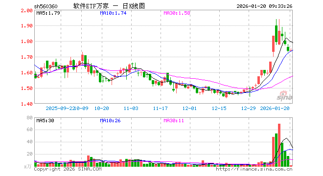 软件ETF指数(560360)业绩比较基准为中证软件服务指数收益率,管理人为万家基金管理有限公司,基金经理为贺方舟,成立(2024-06-13)以来回报为73.27%,近一个月回报为17.98%。