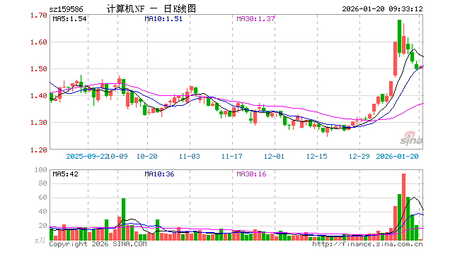 1月20日,计算机ETF南方(159586)开盘涨0.20%,报1.498元。计算机ETF南方(159586)重仓股方面,科大讯飞开盘涨0.74%,同花顺跌0.16%,金山办公涨0.87%,指南针跌0.82%,恒生电子涨1.00%,润和软件涨0.00%,三六零涨0.79%,拓维信息涨0.24%,用友网络涨1.28%。