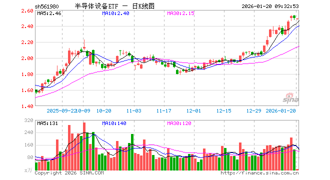 1月20日,半导体设备ETF(561980)开盘跌0.24%,报2.490元。半导体设备ETF(561980)重仓股方面,中微公司开盘跌0.79%,北方华创跌0.55%,寒武纪跌0.19%,中芯国际跌0.23%,海光信息涨1.97%,长川科技跌0.79%,华海清科跌0.71%,拓荆科技跌0.80%,南大光电跌0.65%,安集科技涨0.05%。