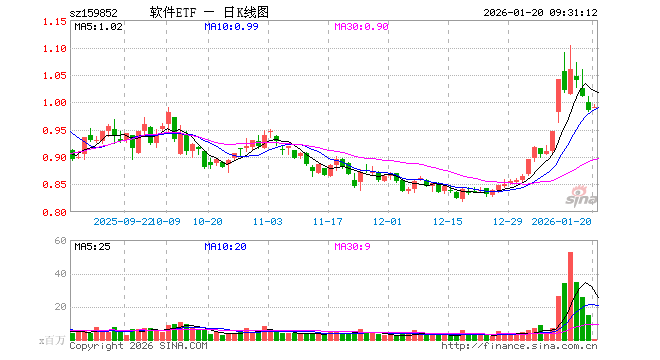 1月20日,软件ETF(159852)开盘涨0.51%,报0.990元。软件ETF(159852)重仓股方面,科大讯飞开盘涨0.74%,同花顺跌0.16%,金山办公涨0.87%,指南针跌0.82%,恒生电子涨1.00%,润和软件涨0.00%,三六零涨0.79%,拓维信息涨0.24%,用友网络涨1.28%。