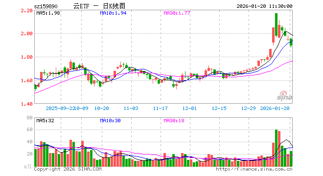 云计算ETF(159890)业绩比较基准为中证云计算与大数据主题指数收益率,管理人为招商基金管理有限公司,基金经理为房俊一,成立(2021-03-25)以来回报为94.13%,近一个月回报为18.03%。