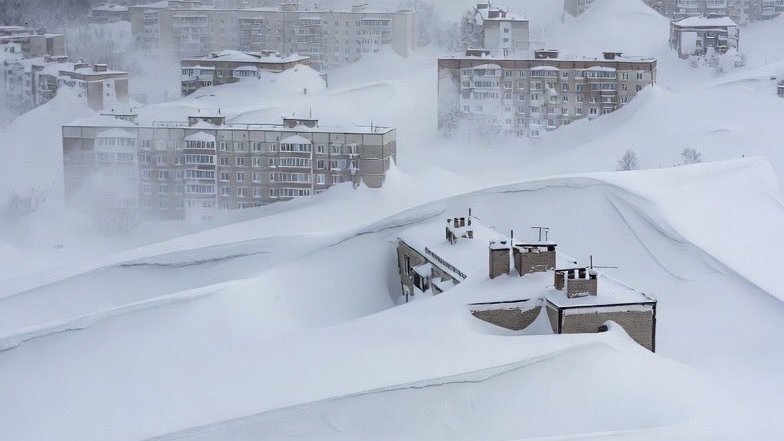 俄罗斯一地暴雪堆出公寓楼高雪坡 这就是俄罗斯堪察加半岛遭遇暴风雪后的样子