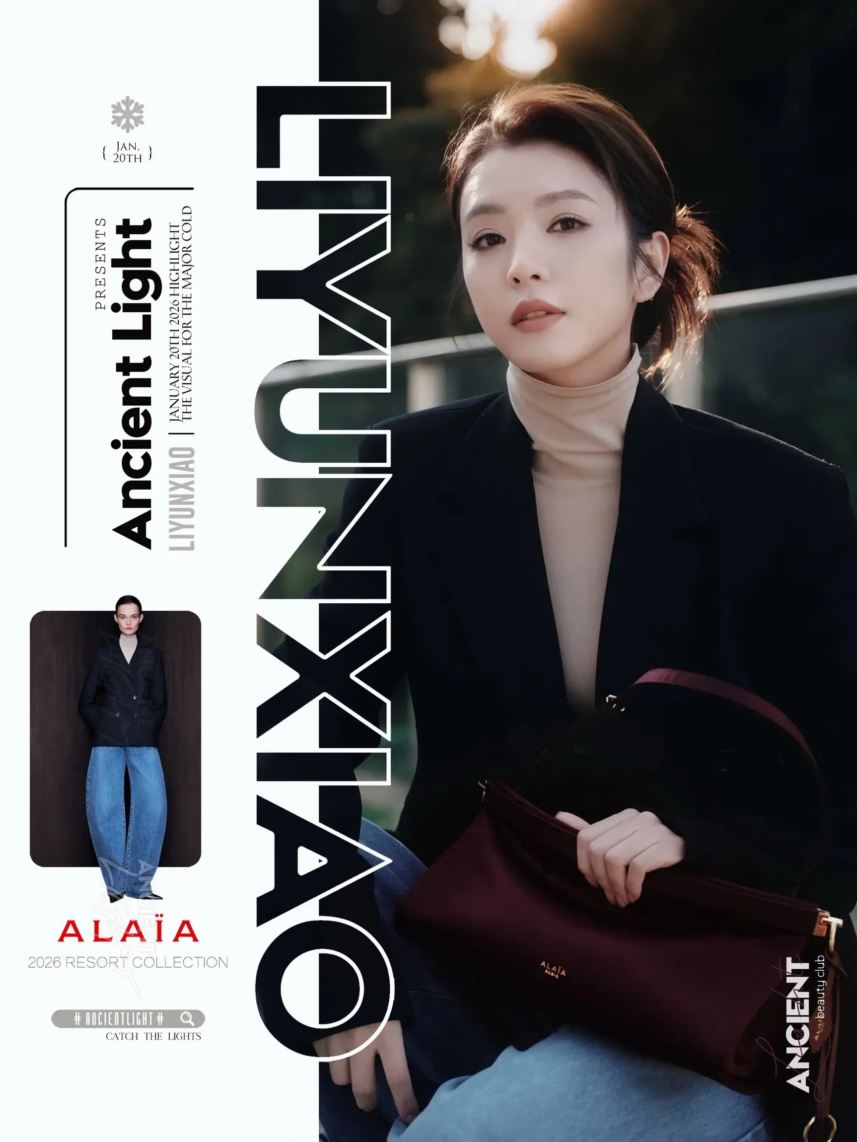 李云霄· 完美诠释less is more的个人静谧感 不同场景的光谱为她的西服镀上一层柔焦滤镜。一场 柔中带刚的风格理念。牛仔裤与酒红手袋是恰到好处的留白,让气质成为焦点。在独处的静谧里,完成一场与自我的对话。美,原来可以如此不动声色,却掷地有声。 李云霄美出高级感神级现场ANCIENTLIGHT