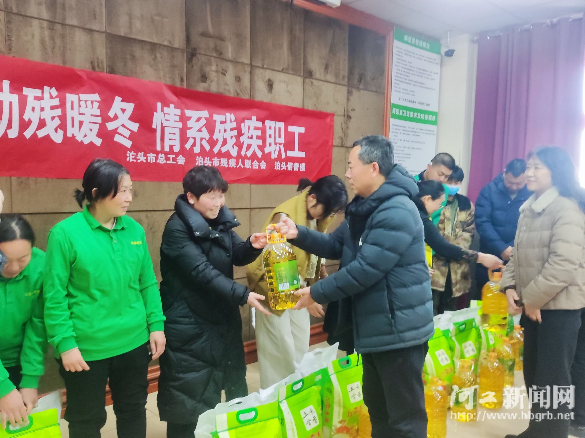 河工新闻网讯(记者周斐通讯员王俊)1月20日上午,泊头市总工会联合市残疾人联合会开展了“助残暖冬情系残疾职工”慰问活动。慰问组来到信誉楼百货集团有限公司泊头商厦,为残疾职工们送去了米、面、油等慰问品,以及暖心的新春祝福。