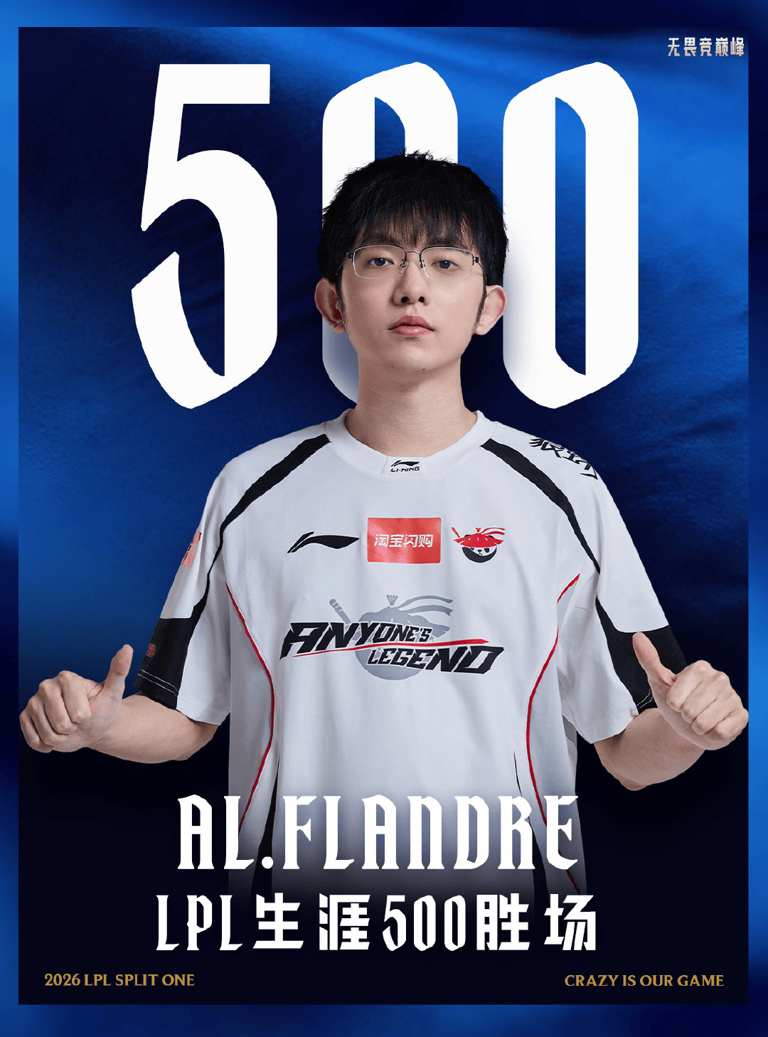 虎扑01月20日讯在今日AL对战WBG的比赛中,Flandre使用雷克塞达成了在LPL的第500次胜场,是第7位达成该成就的选手,恭喜Flandre!