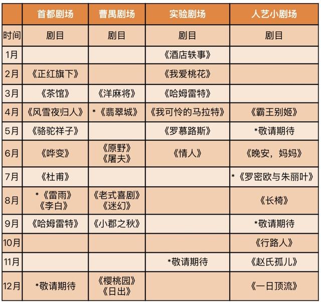 班赞导演的《老式喜剧》将继续与观众相约“为八月干杯”,也将在本轮迎来百场演出。《小郡之秋》《樱桃园》均将在秋冬二度上演。年末,冯远征导演的《日出》将以青春化的诠释,陪伴观众温暖跨年。