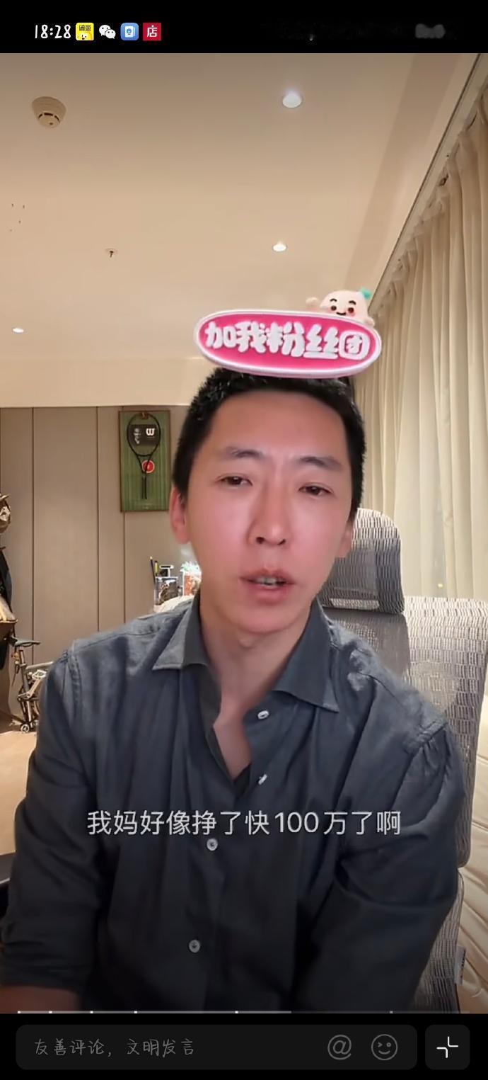 留几手说自己不看好2026年的股市,自己不炒股,但妈妈炒股赚了快100万了,说以后都是他的,自己不想要也没办法