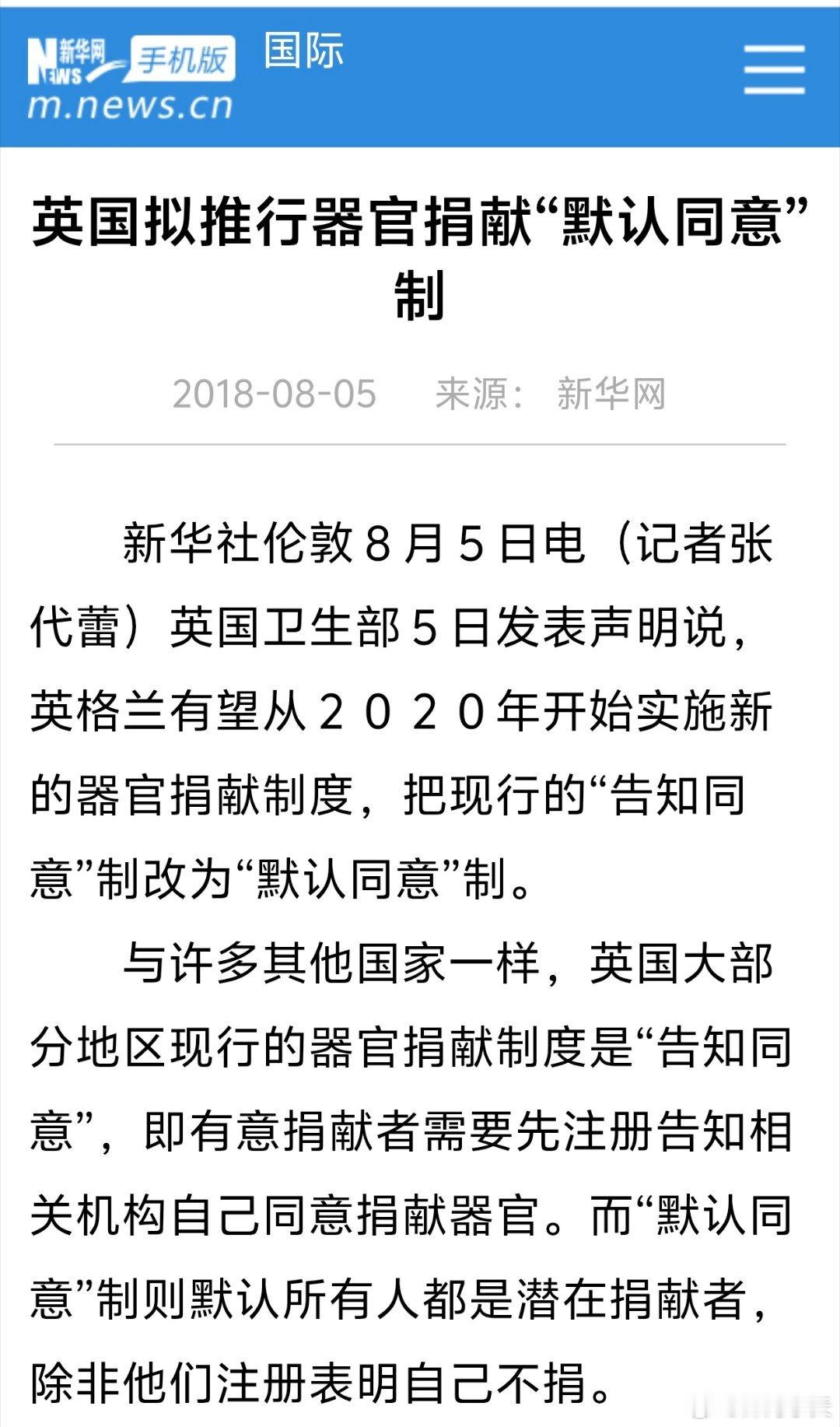 比美国更可怕是英国默认器官捐献 牢A提醒美国留子,中国孩子身体健康不吸毒,是市场上的高价器官,填资料时各种器官捐献的选项都要去掉,避免有意外昏迷时直接就变高达。美国摘活人器官的新闻时有出现,甚至闹过上国会听证,但更可怕的是美国他昂撒老爹英国。2020年5月20日英国《麦克斯和凯拉法案》正式实行,这个法案还有一个更加通俗易懂的名字就是《器官捐赠(视同同意)法案》。该法案规定在英国所有居住满12个月的成年人都将被视为在同意在他们死后捐献自己的器官,所以即使你是留学生或者来自其他国家的人,都符合这个条件。除非另外递交表格申请,不然身上的器官就被各机构“默认”了。美媒印证了牢a的捐献器官说法牢A科普美国斩杀线