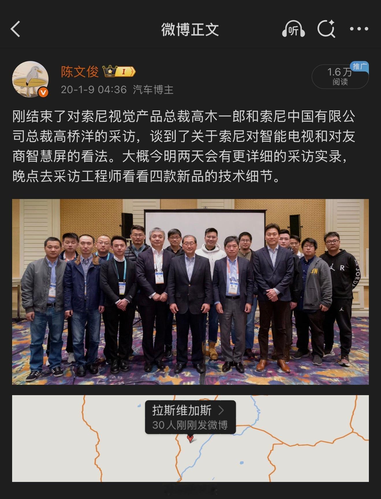 18、19 年去品川参观索尼总部, 20 年受索尼邀请参加 CES,当时的展会赞