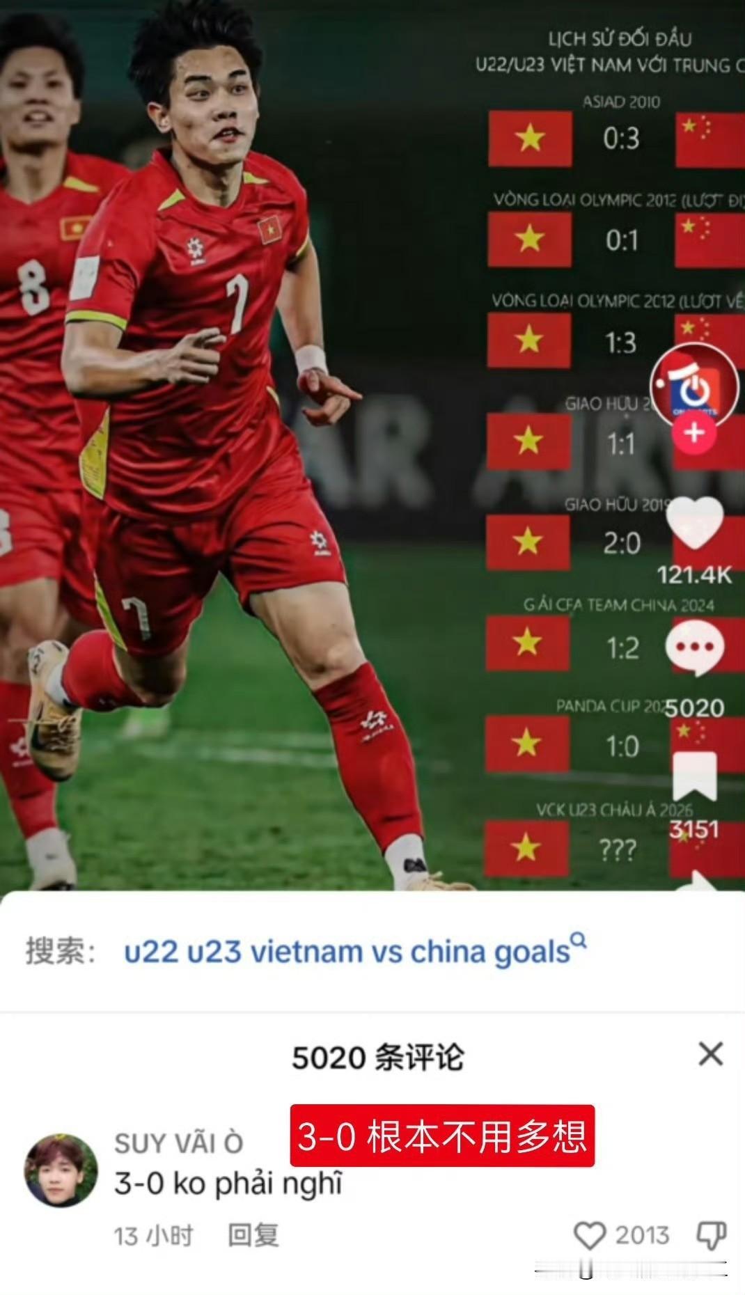 U23国足3比0越南U23 比赛之前越南网民还各种豪言壮语说要3:0国足,现在