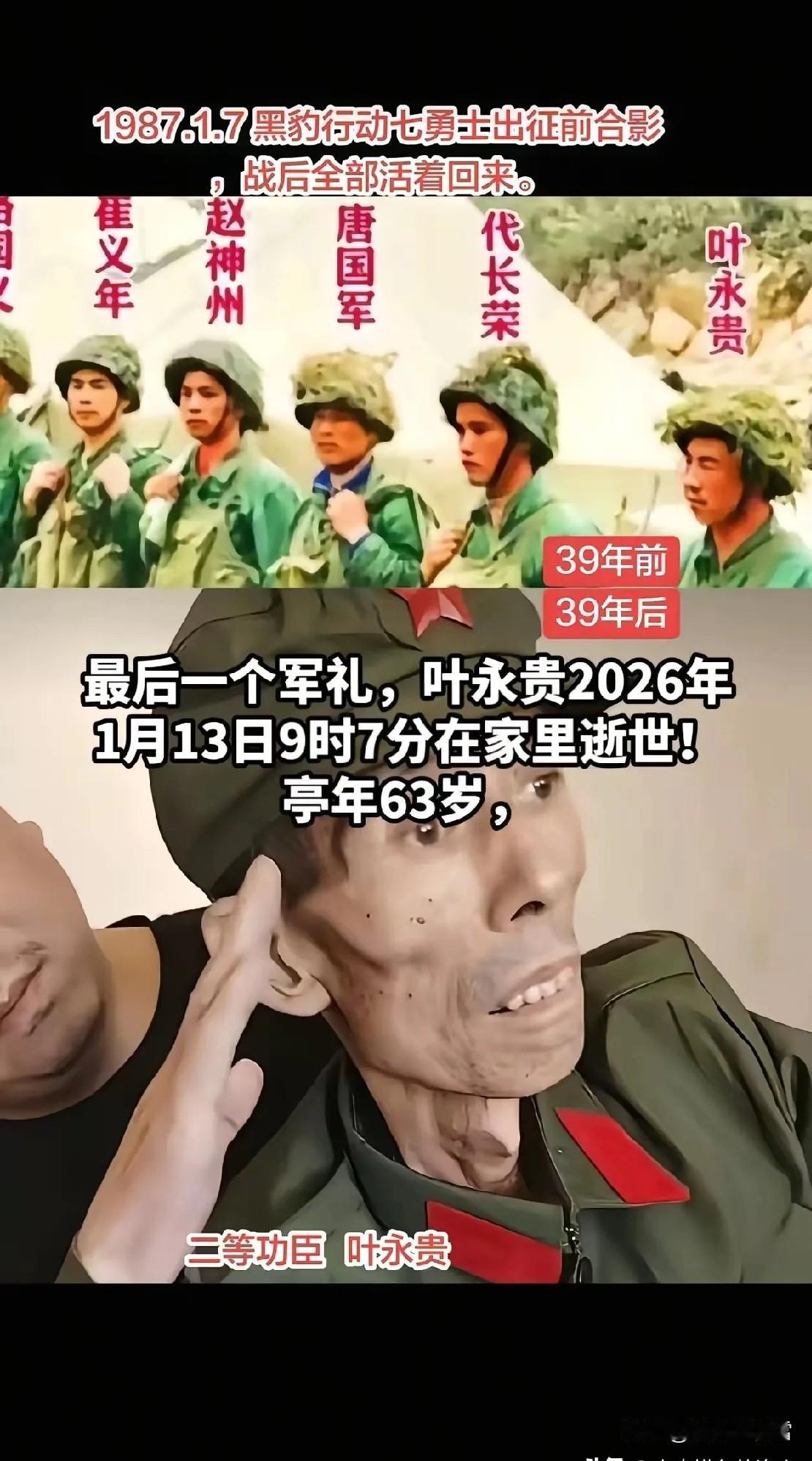 越战老兵叶永贵于1963年出生在甘肃武威,1984年10月,他参军入伍,1985年12月赴云南前线作战,1986年4月至7月在老山进行防御作战。 武威地处河西走廊东端,风沙大、日子苦,当地人骨子里都带着股不服输的韧劲。叶永贵家在农村,父亲是上过朝鲜战场的老兵,退伍后守着几亩旱地过日子,常跟他讲“保家卫国是男人的本分”。 1984年村里征兵,21岁的叶永贵刚结婚半年,妻子怀着身孕,他夜里翻来覆去睡不着,看着炕头妻子织的红腰带,第二天一早就报了名。 出发那天,妻子挺着肚子送他到村口,塞给他一包煮鸡蛋,眼泪在眼眶里打转:“活着回来,我和娃等你。”这句话,成了他战场上最坚定的信念。 新兵连三个月的训练强度超出想象,负重五公里越野、匍匐前进、实弹射击,叶永贵瘦了十几斤,手上磨出的水泡破了又结,结成厚厚的茧子。 他所在的部队是原兰州军区第47集团军139师,接到赴滇轮战命令时,全连战士都写了请战书,叶永贵的请战书末尾写着“轻伤不下火线,重伤不进后方”。 1985年12月,他们坐闷罐火车南下,一路颠簸了七天七夜,车厢里挤满了人,连睡觉都得轮流着来,有人晕车吐得厉害,有人偷偷抹眼泪,叶永贵把妻子给的红腰带系在手腕上,一遍遍摸着凉凉的布料,心里踏实了不少。 到老山前线的第一天,叶永贵就被眼前的景象震撼了。阵地建在半山腰,战壕深一米多,猫耳洞低矮狭小,只能蜷着身子坐,里面潮湿得能长出青苔,被褥永远是湿冷的。他们的任务是坚守164高地,对面就是越军的阵地,直线距离不过百米,能清楚听到对方的说话声。 白天要警惕敌人的冷枪冷炮,晚上得轮流站岗,饿了就啃压缩饼干,渴了喝一口浑浊的雨水,最难熬的是雨季,雨水顺着猫耳洞的缝隙往下淌,衣服鞋子从来没干过,很多战士都得了皮肤病,瘙痒难忍。 1986年5月的一天,越军突然发起猛攻,炮火像雨点一样落在阵地上,泥土和碎石飞溅,叶永贵所在的班负责守住左侧阵地。他趴在战壕里,握着半自动步枪,心脏砰砰直跳,这是他第一次直面真正的战场。 身边的战友王建军突然喊了一声“小心”,一把将他推开,紧接着一颗炮弹落在他刚才趴着的地方,泥土埋了他半截身子。王建军的胳膊被弹片划伤,鲜血直流,却笑着说“没事,皮外伤”。 那天战斗持续了八个小时,叶永贵打光了三梭子子弹,手指被枪栓磨得血肉模糊,直到天黑,越军才撤退,阵地上到处是弹坑,空气里弥漫着硝烟和血腥味。 6月中旬,叶永贵接到潜伏任务,要在距离越军阵地50米的草丛里潜伏三天三夜,观察敌情。白天太阳暴晒,地表温度超过40度,汗水顺着额头往下流,钻进眼睛里刺痛难忍,他一动不动;晚上蚊虫叮咬,身上起了密密麻麻的包,他只能咬牙坚持。 第二天夜里,他感觉腿上一阵剧痛,用手一摸,是一条毒蛇,他屏住呼吸,慢慢抽出腰间的匕首,精准地刺中蛇的七寸。 潜伏的最后一天,他发现越军在阵地前沿部署了新的火炮,立刻用暗号把信息传递回去,为部队的反击争取了主动。任务完成后,他回到阵地,整个人瘦了一圈,嘴唇干裂起皮,战友们都开玩笑说他“脱了一层皮”。 1986年7月,叶永贵在一次防御作战中被弹片击中右腿,鲜血瞬间染红了裤腿,他简单包扎了一下,继续坚守阵地,直到战斗结束才被抬下战场。送到后方医院检查,弹片嵌入骨头,医生说必须手术取出,术后需要休养三个月。 躺在病床上,他最担心的是阵地的战友,每天都要向护士打听前线的消息。同年10月,他伤愈归队,部队给他记了三等功,可他总说“功劳是大家的,我只是做了该做的”。 1988年,叶永贵退伍回到武威老家,妻子抱着两岁的儿子站在村口接他,看到他瘸着的右腿,眼泪一下子就掉了下来。退伍后的日子,他没有向政府提任何要求,靠着在部队学的修理技术,开了一家小小的农机修理铺。 村里有人遇到困难,他总是主动帮忙,遇到参军的年轻人,他会给他们讲老山前线的故事,告诉他们“军装穿在身上,责任扛在肩上”。这些年,他每年都会和当年的战友聚一次,有人牺牲在战场上,他们就一起去看望烈士家属,给他们送去生活用品。 如今的叶永贵已经60岁了,右腿的伤疤还清晰可见,阴雨天会隐隐作痛,但他从来没后悔过当年的选择。他常说,老山精神不是挂在嘴上的,是刻在骨子里的,是战友之间的生死相托,是对国家和人民的忠诚。 那些在战场上牺牲的战友,永远活在他的心里,他要替他们好好活着,看着国家越来越强大,看着家乡越来越富裕。 老兵的故事,是一段历史的见证,更是一种精神的传承。他们在青春年华挺身而出,用鲜血和汗水守护家国安宁,退伍后默默奉献,坚守初心。 这种不畏艰险、忠诚奉献的精神,值得我们每一个人铭记和学习。各位读者你们怎么看?欢迎在评论区讨论。