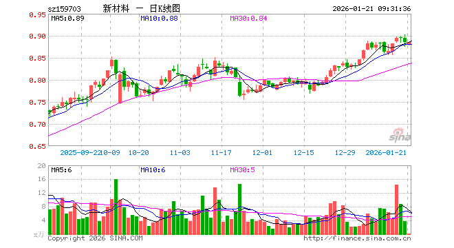 新材料ETF(159703)业绩比较基准为中证新材料主题指数收益率,管理人为天弘基金管理有限公司,基金经理为祁世超,成立(2021-05-27)以来回报为-11.35%,近一个月回报为11.76%。