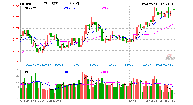 农业ETF(516550)业绩比较基准为中证大农业指数收益率,管理人为嘉实基金管理有限公司,基金经理为李直,成立(2021-03-30)以来回报为-20.69%,近一个月回报为4.36%。