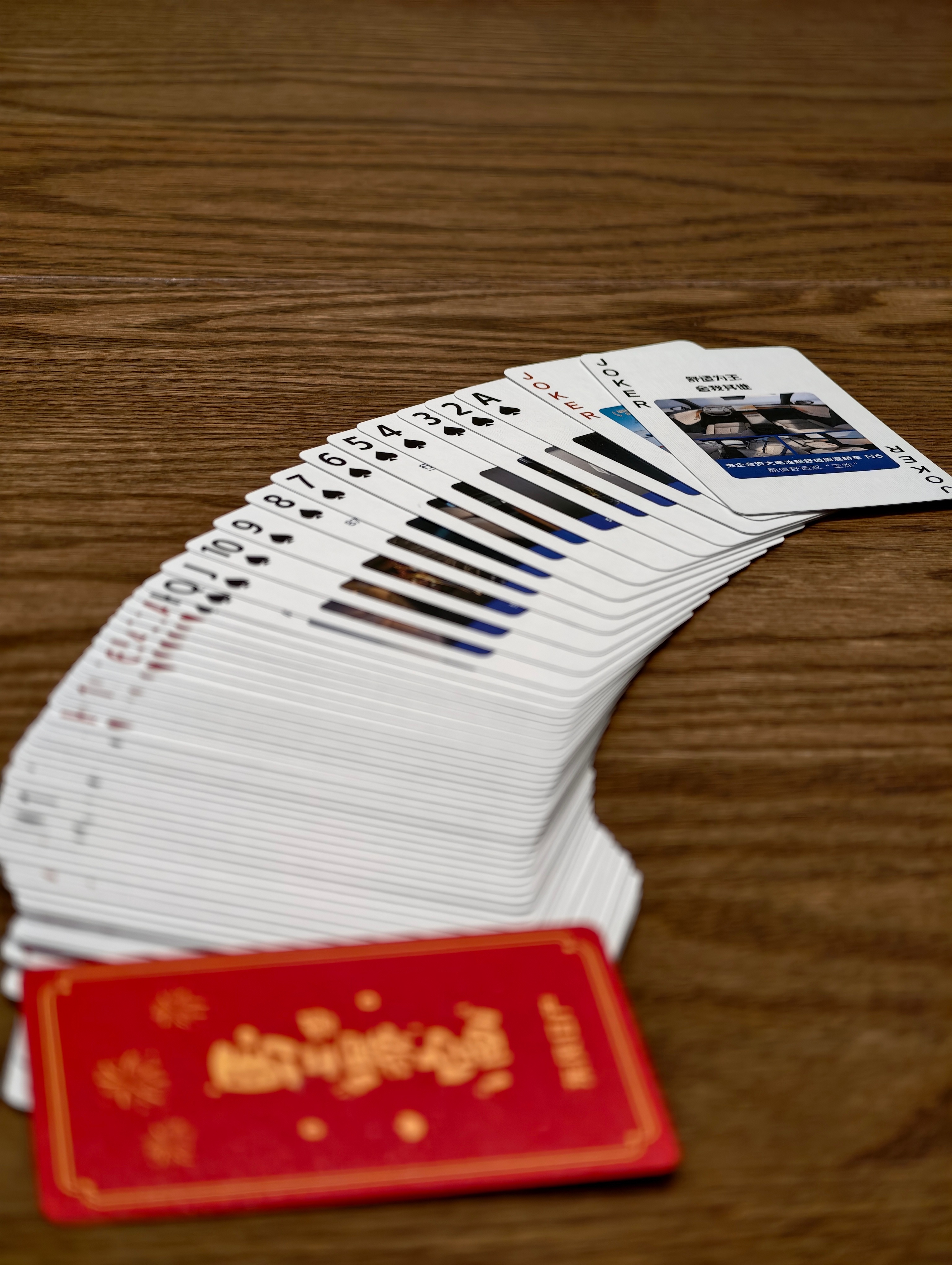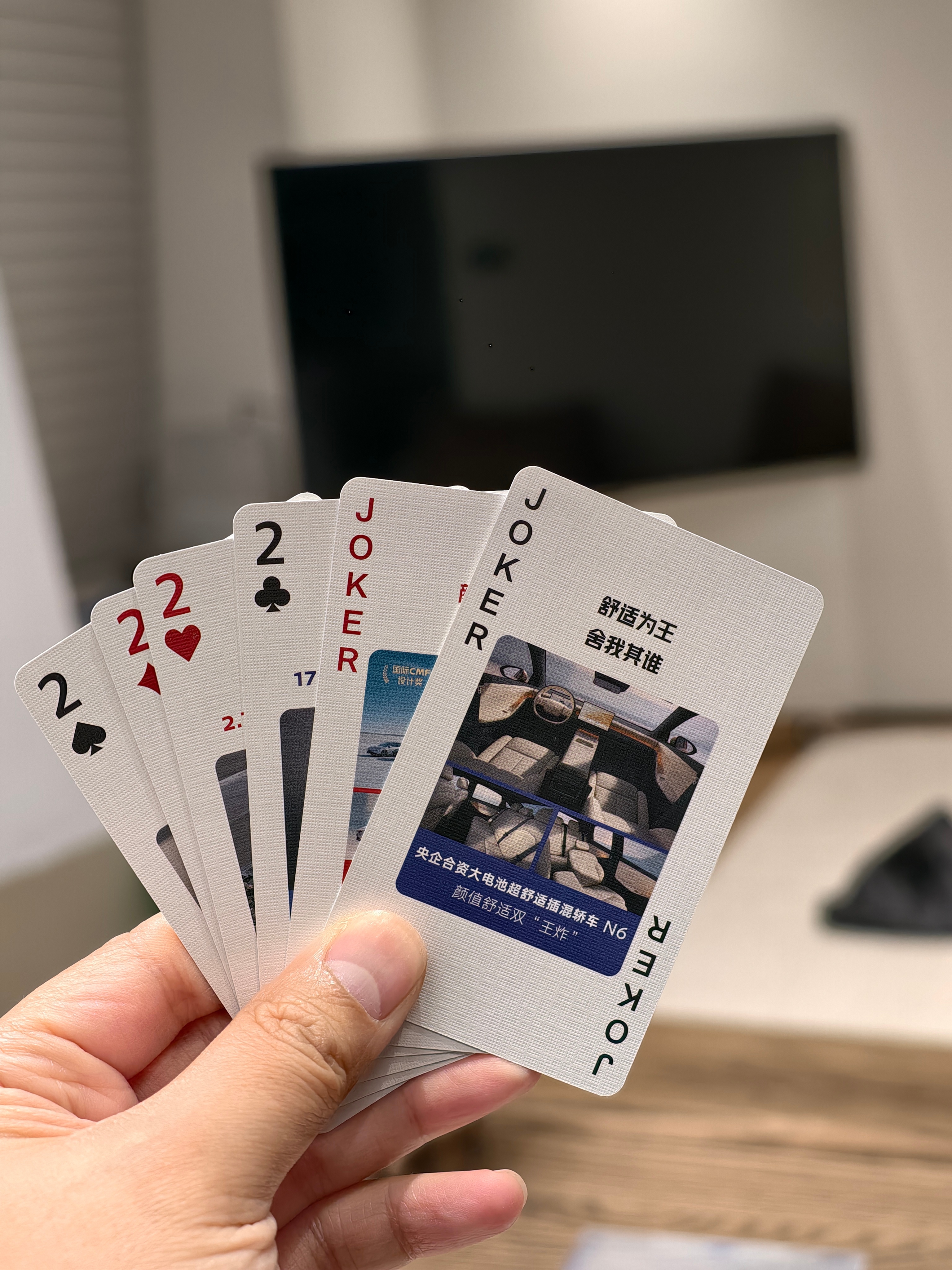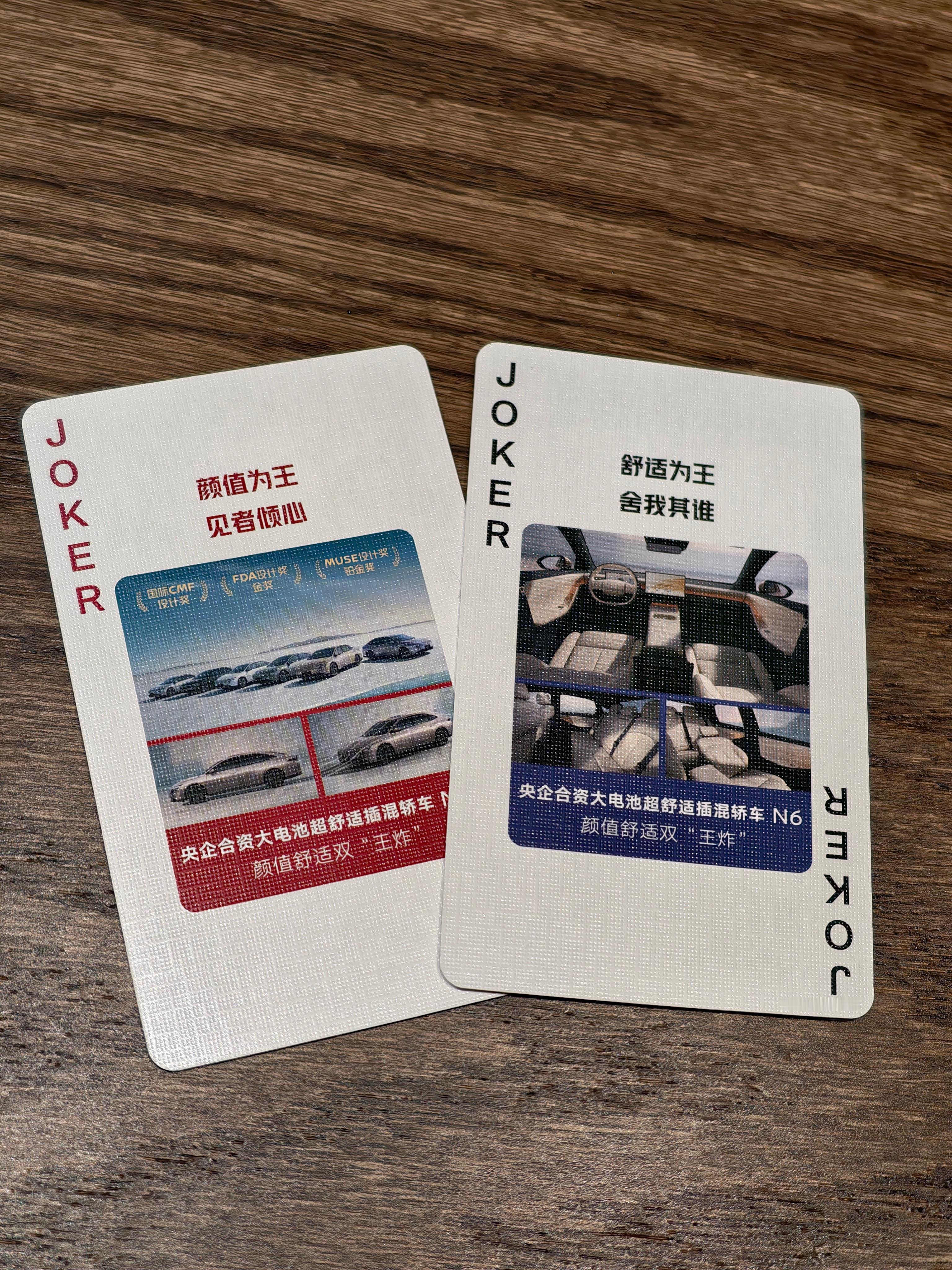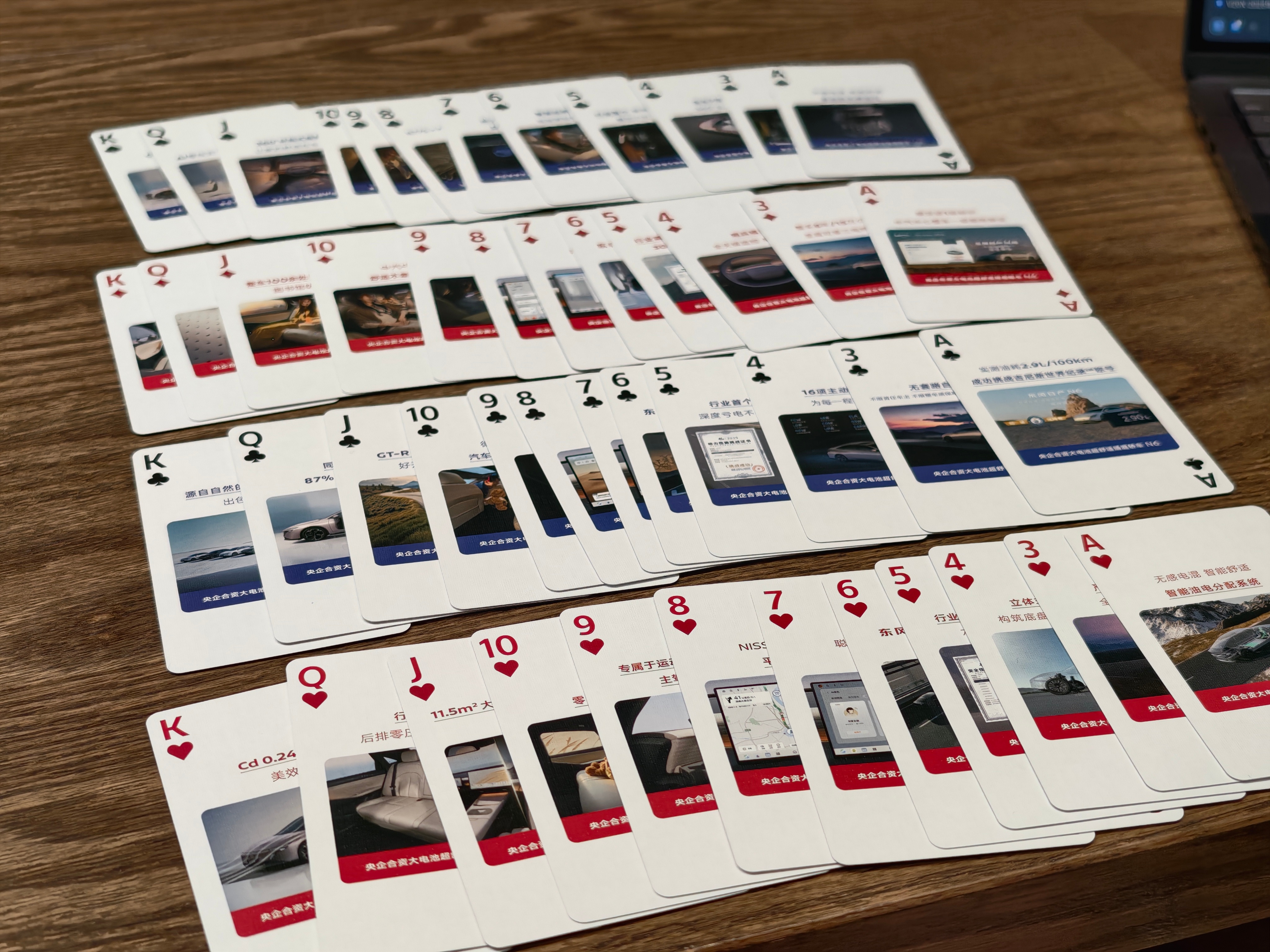 做周边,东风日产是汽车行业里最专业的之一了?昨天到家发现收到两副牌,日产N6把“四个二两个王”玩成了字面意义上的意思?今天听的视频,原来这幅扑克牌上画的心思,不比大沙发上的少。过年正好全家人聚会,打打升级斗地主正好~