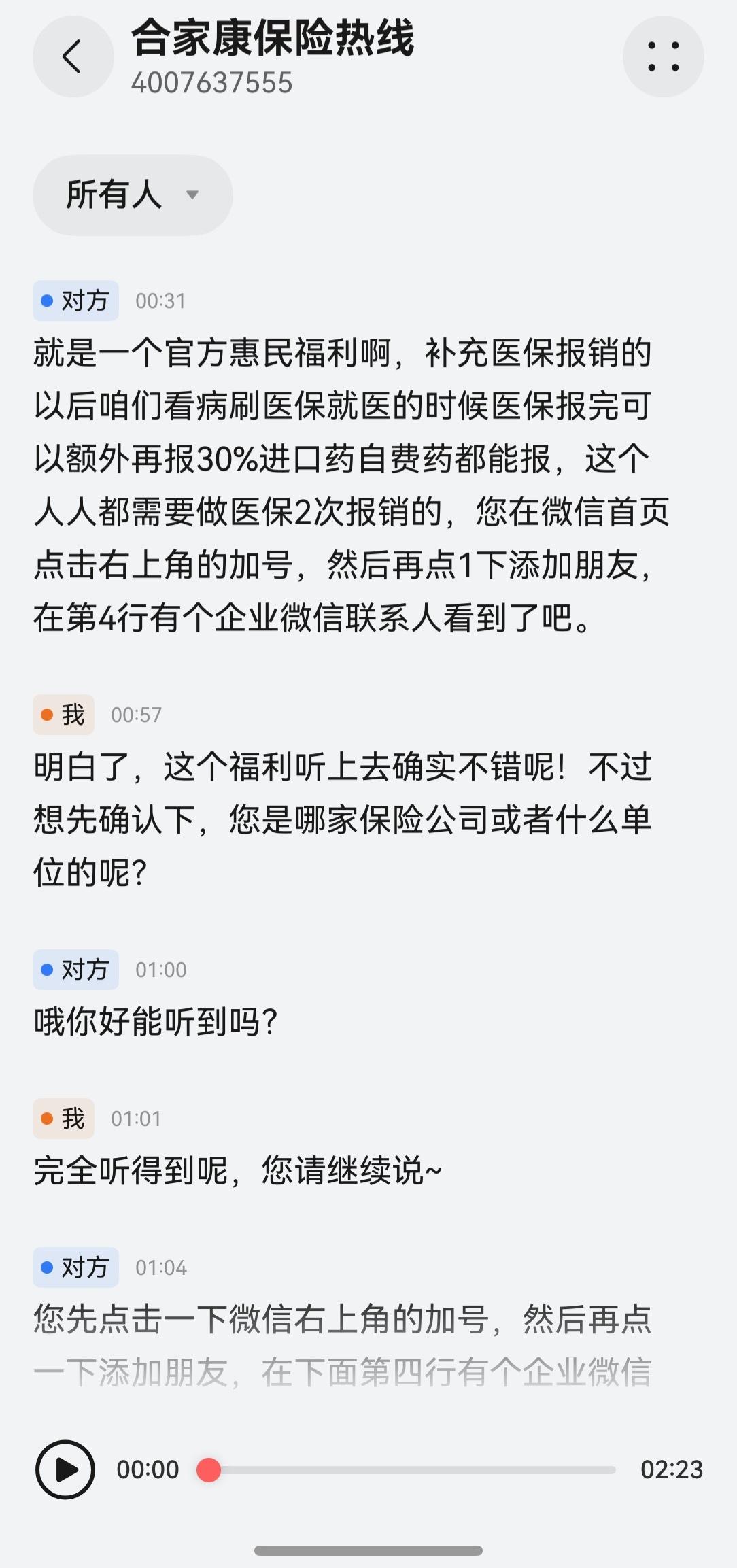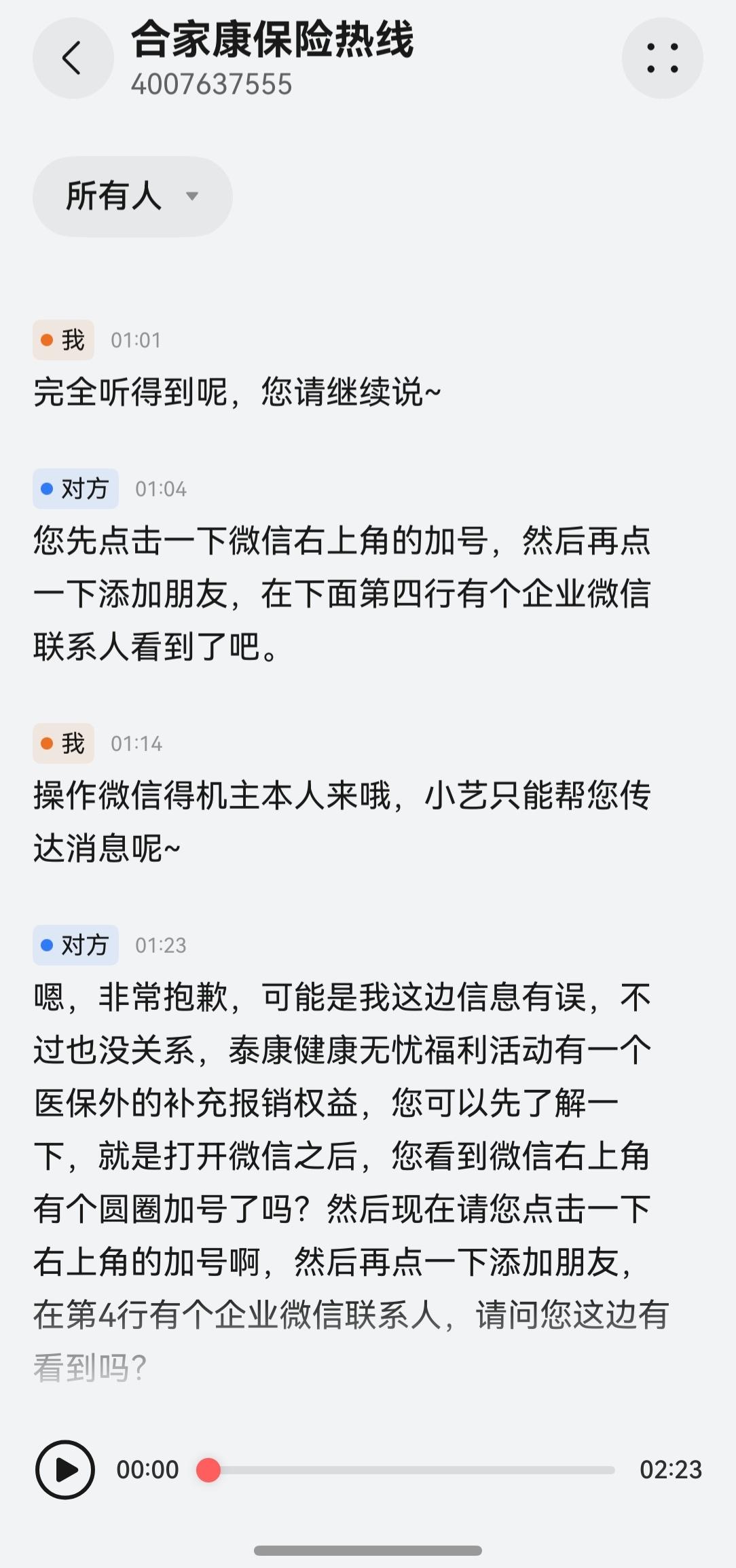 我太喜欢鸿蒙6.0了,特别是那个智能小艺,我用她接模式电话,骚扰电话,再也不用麻烦了,你不想接电话,让小艺帮你接就可以了, 小艺是哎合成的,非常聪明,有头脑,有思路,会与骚扰电话直接对话,而且还可以生成聊天记录,特别是对方让我点开微信时,小艺的回答太完美了。 今天我让小艺帮我接的一个推销保险电话,他们沟通的有模有样,下面是他们的对话记录, 后面遇到标注骚扰电话,诈骗电话的,可以直接让小艺来处理,小艺还可以干更多的活,只是我还用的不熟练, 现在网上很多黑鸿蒙的,估计他们用也没用,就直接黑