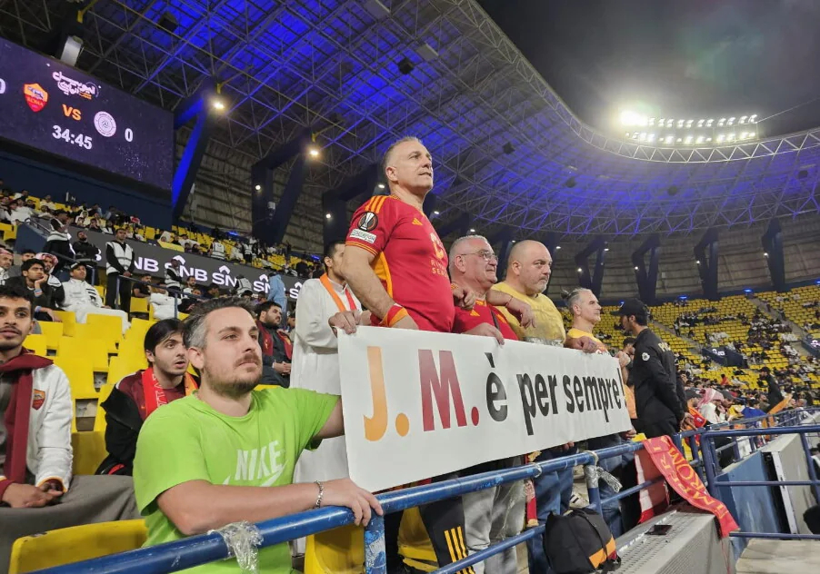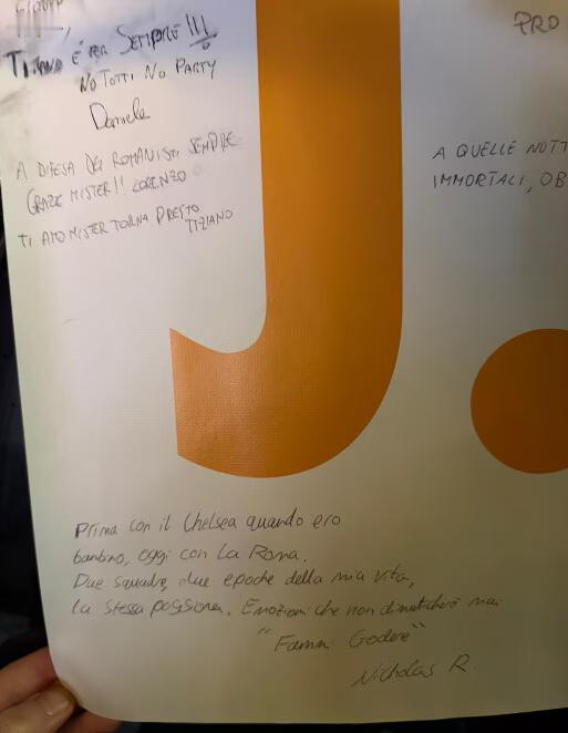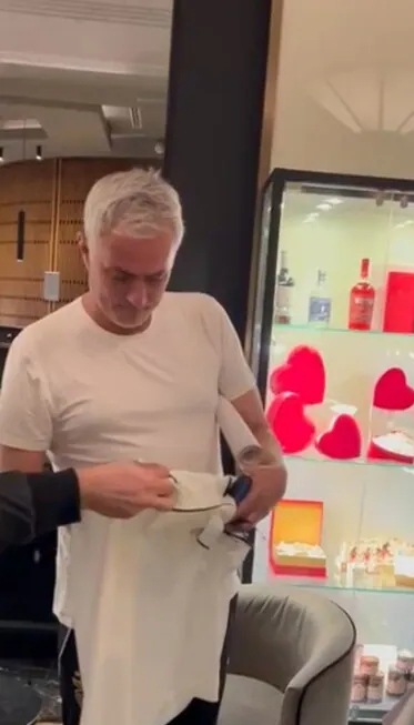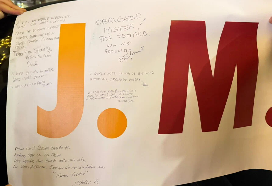 昨天有一小群罗马球迷在本菲卡入住的酒店外等待穆里尼奥,他们是上轮追随罗马前往都灵客场的,由于本菲卡要来踢欧冠,他们就决定在都灵多等几天。穆里尼奥开完发布会之后,鲁伊科斯塔告诉他有罗马球迷在外面等待,他穿着短袖就下来了,跟球迷们签名合影,并且聊了几分钟。有位球迷问他:“以后会不会回来”,他笑着说:“谁知道呢”,然后大家聊起了一些欧洲赛场上的经典战役,穆里尼奥说:“我们当时在罗马很开心”。最后球迷们送给了穆帅一条写满了致辞的横幅,他情绪有点激动,向大家表达了谢意。