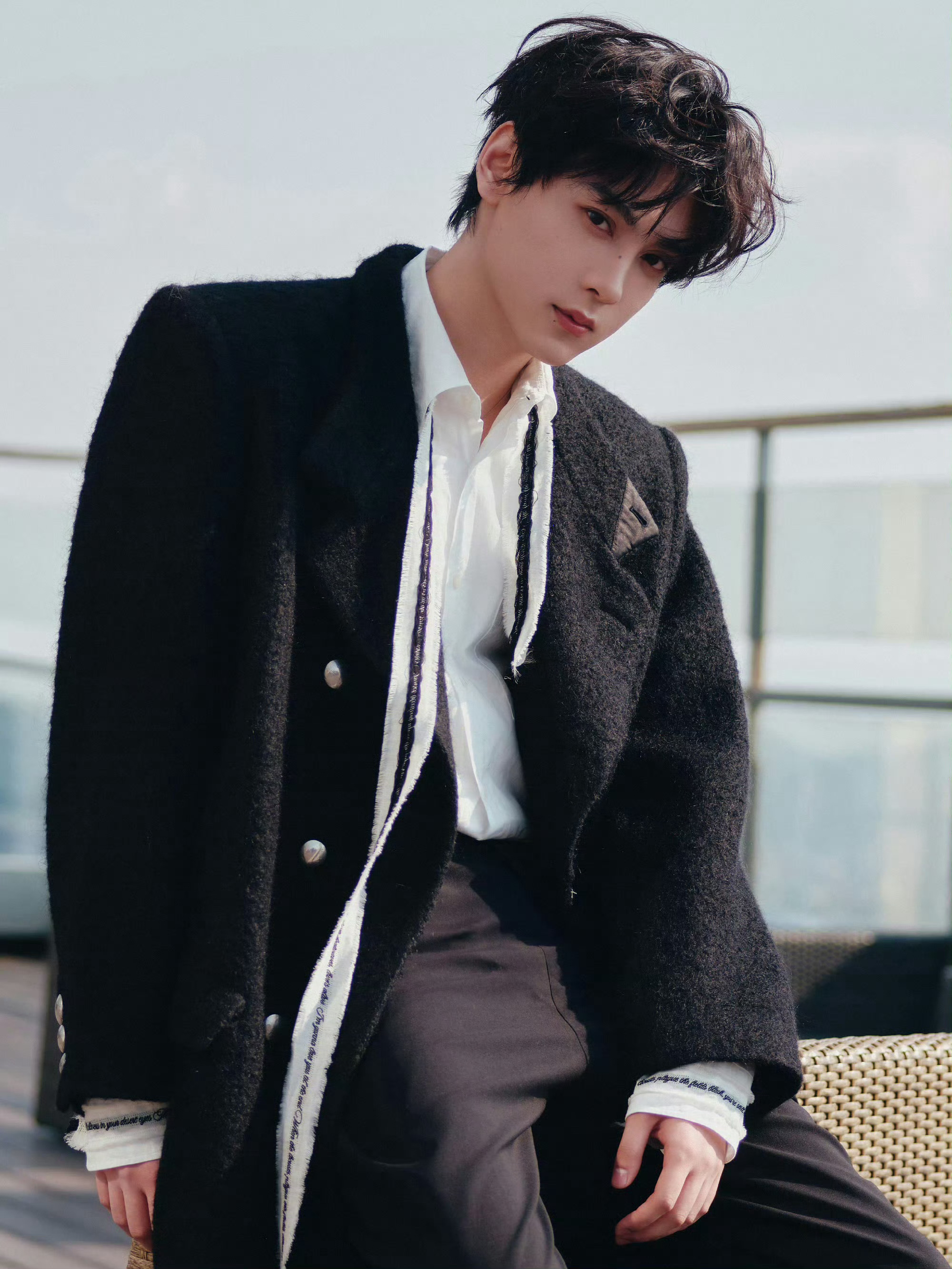 田栩宁 × 今日欧莱雅品牌线下活动造型大片田栩宁黑色大衣造型 田栩宁宁波活动人气
