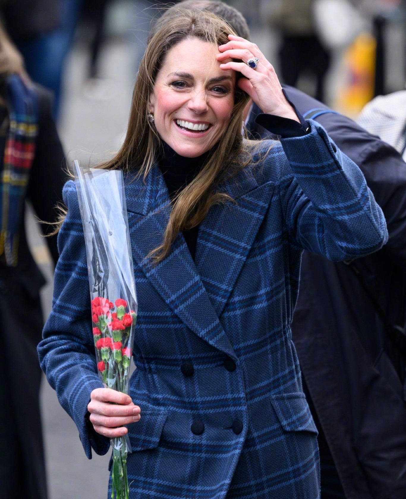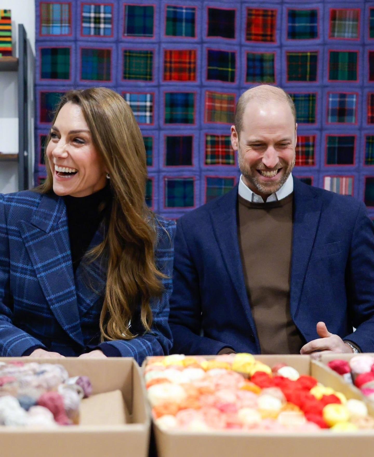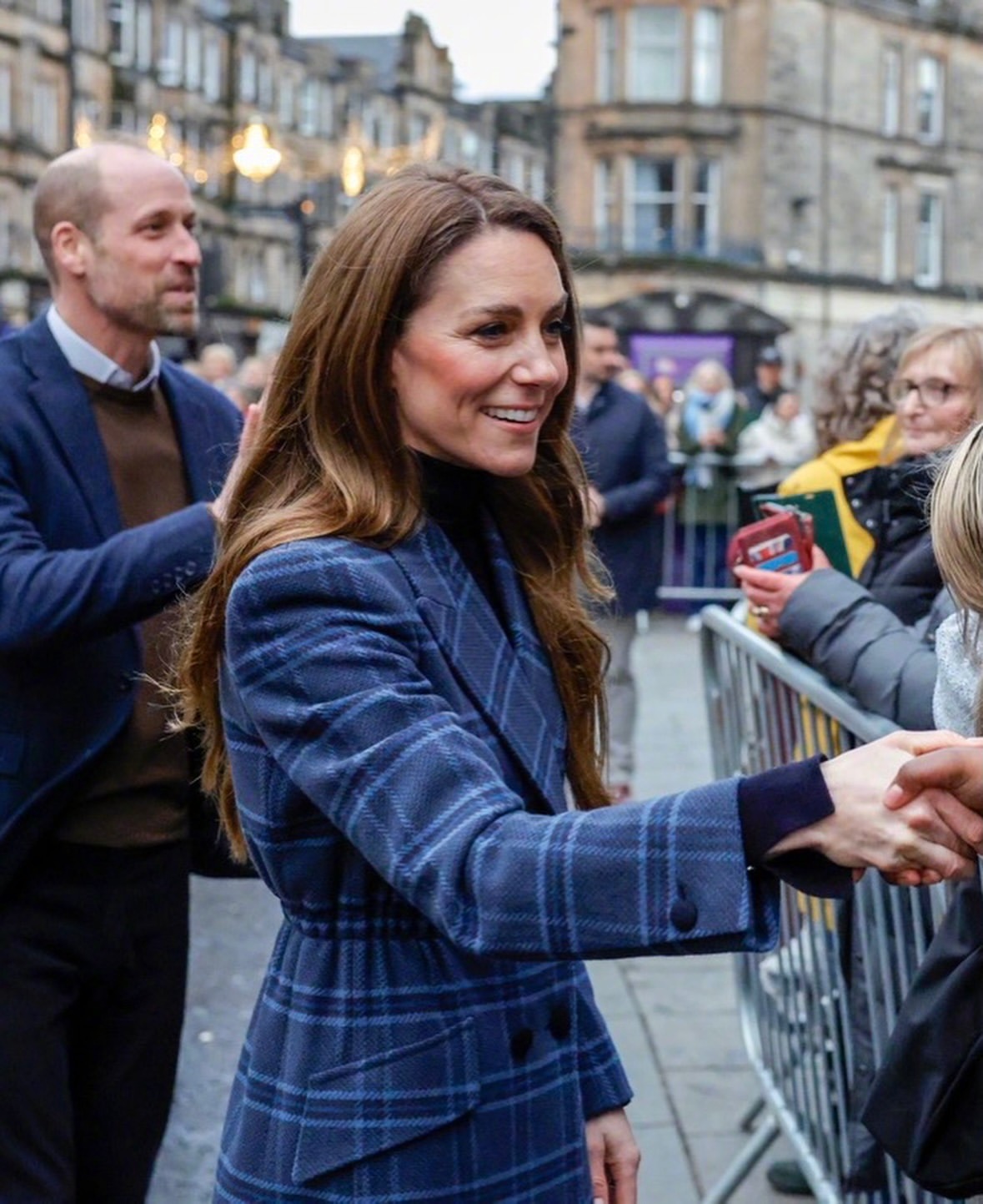 当地时间1月20日,威廉王子和凯特王妃访问斯特林(Stirling)和福尔柯克(Falkirk),此次访问是突出呈现独特的苏格兰文化传统。在苏格兰期间,他们被称为罗斯西公爵和公爵夫人(The Duke and Duchess of Rothesay)。当天的首站,会见了英国队及残奥会冰壶队,他们正在为即将在米兰-科尔蒂纳举行的冬奥会做准备。随后又参观了 Radical Weavers——位于斯特林市中心的手工织布工作室及独立慈善机构,并亲手尝试制作苏格兰格子呢(Tartan)🪡。在最后一项行程中,俩人访问了 “The Goth”。这家酒吧成立于1910年,是苏格兰少数仍按照哥德堡系统运营的酒吧之一,酒吧及饮品收入的一部分会返还社区。凯特身穿Chris kerr定制蓝色格子呢大衣,内穿zara 海军蓝纽扣袖高领毛衣,脚穿Gianvito rossi 海军蓝绒面 Rhymes 靴,佩戴椭圆形蓝宝石吊坠耳环。米拉服饰解析