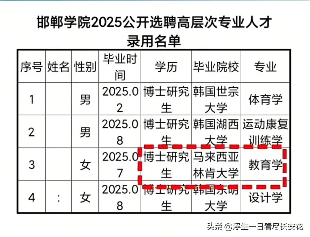 怎么可能是萝卜岗,确定不是萝卜岗?最近邯郸学院拟聘4名高层次人才上了热搜,因为这些人才均毕业于海外不知名高校,而且都有编制!是国内没有人才了吗,还是让这些人回来接班了?其实不用猜,大家也都知道怎么回事。 目前来看,流程是没有问题的,因为这个招聘上从决策到实施整条线上的人都会为这些人开路,你只要照着这条路走就行了,走完了就可以光明正大的入编了,普通人寒窗苦读多年拼命地往上爬,可萌一辈子都不知道这条路在哪里,连门都找不到。 因此很多人表示:“我们都知道怎么回事,但没人能把他们怎么样,因为一切流程合理。”如果是量身定制的,就看学校敢不敢把报名名单公布一下了,如果没有或者就这么几个人,大家也就知道是怎么回事了。