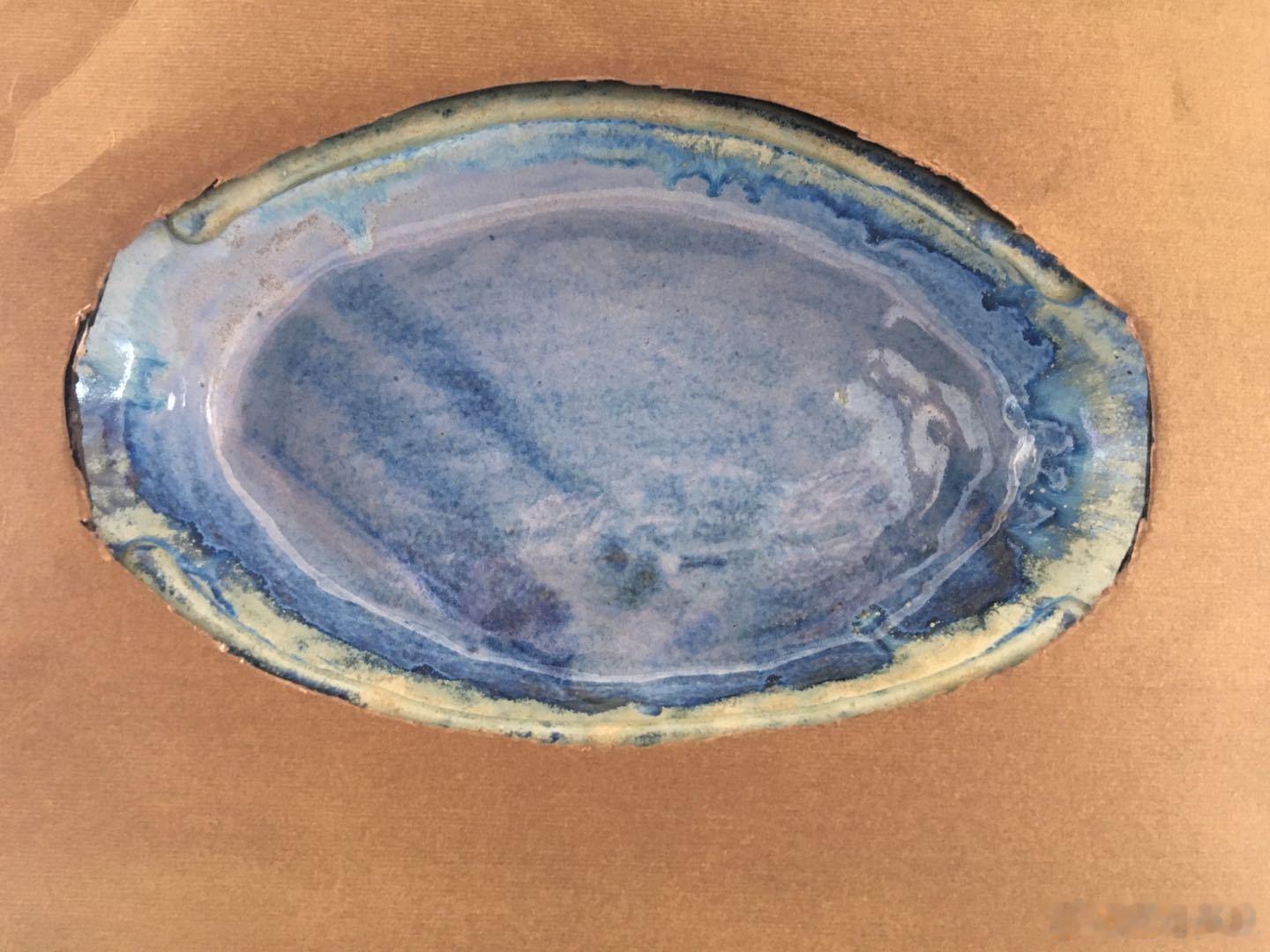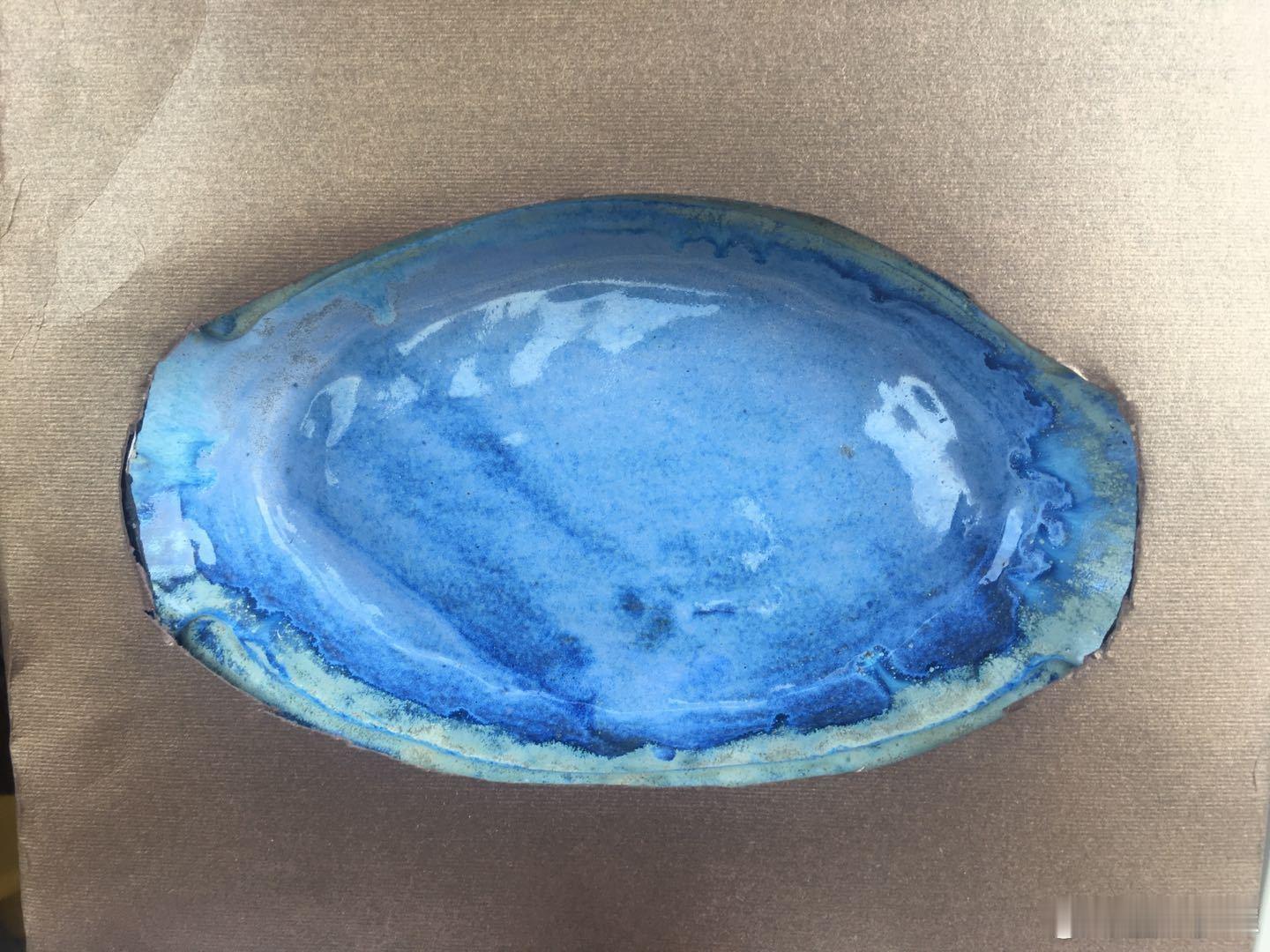 每周鉴赏收藏精品之北宋钧窑窑变釉盘 我们今天从这个角度来鉴赏本件北宋钧窑窑变釉盘。 当我们把它盘体沿边缘包裹起来,它就是一个瓷画:混沌图。 混沌图是一类很有标志性的画片,其最大的特点,就是看不出任何界限和画意,全部因素都柔和在一起。在西方有不少混沌图的名作。但与本件相比,还是太年轻了。 这就是北宋钧窑窑变釉的最高境界。就是窑变效果能够有绘画的要素来描述,俗说就是一幅画。但说着容易,实际烧造起来,是窑工不可控制的,浑然天成。 这也是北宋钧窑窑变釉的金贵之处。金元至今,钧窑已经人为的控制或渲染窑变,收藏鉴赏的角度就不一样了。 我们现在看,自清三代以来,窑变釉瓷器烧造的很精细,图案对称或规整,但缺少一种灵气和缥缈。 虽然本件北宋钧窑窑变釉盘,窑工在烧造的时候,也不知道什么原因,边缘变形了,上下两个边缘不对称了,按说应该是个废品了,但它确存世千年,游历海外,被外国藏家刻字留念。为什么呢?就是因为它的窑变效果太有画意! 我们很幸运,十年前它成为我们收藏到的第一件钧窑瓷器。
