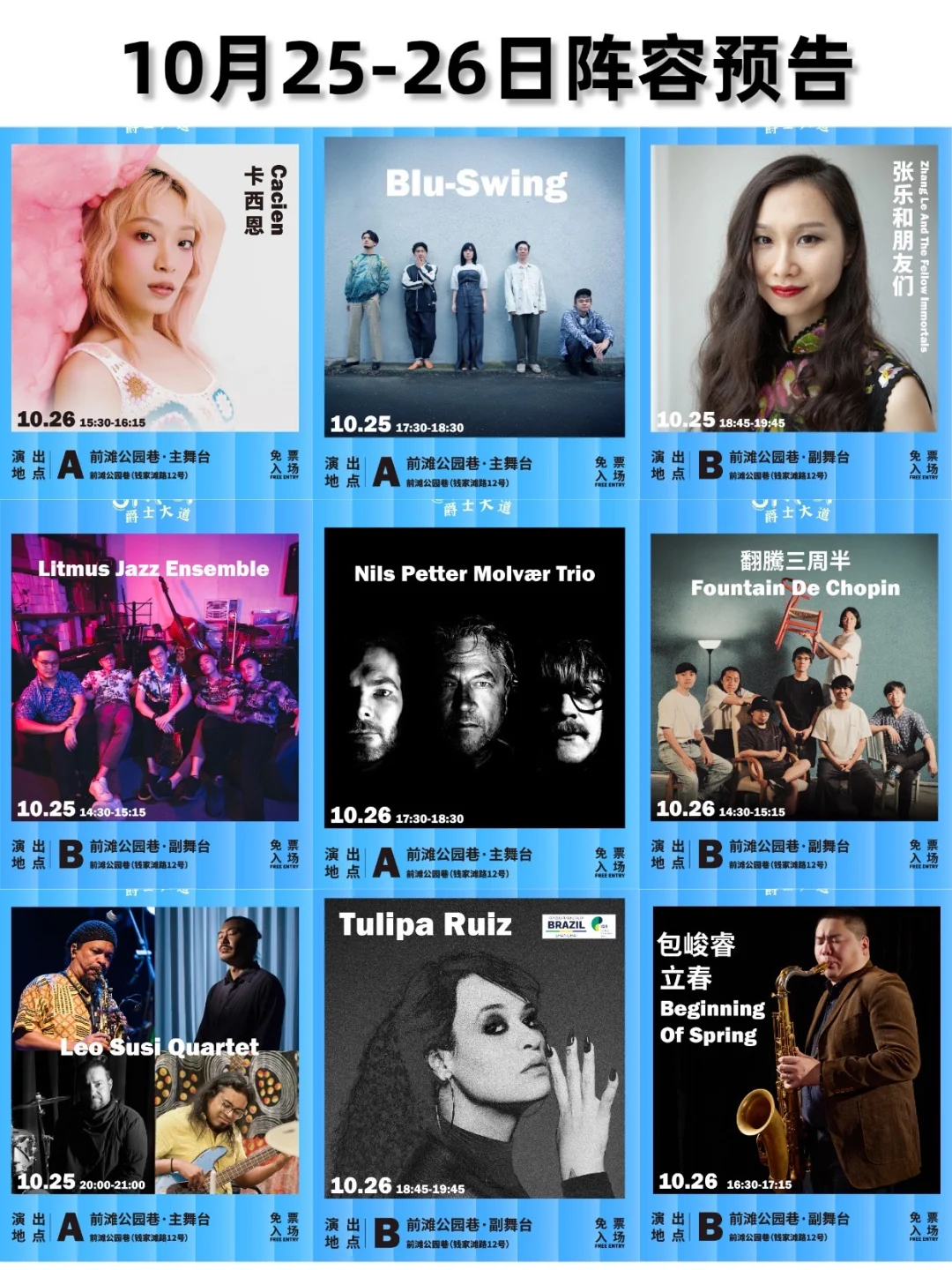 ⭐️前滩公园巷副舞台:10.25-26 每天14:30-19:45