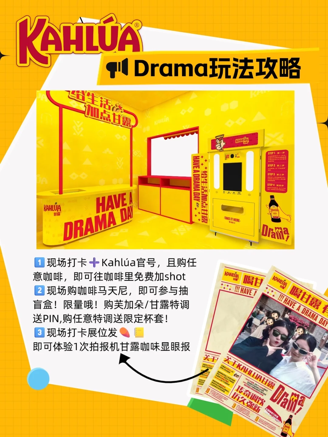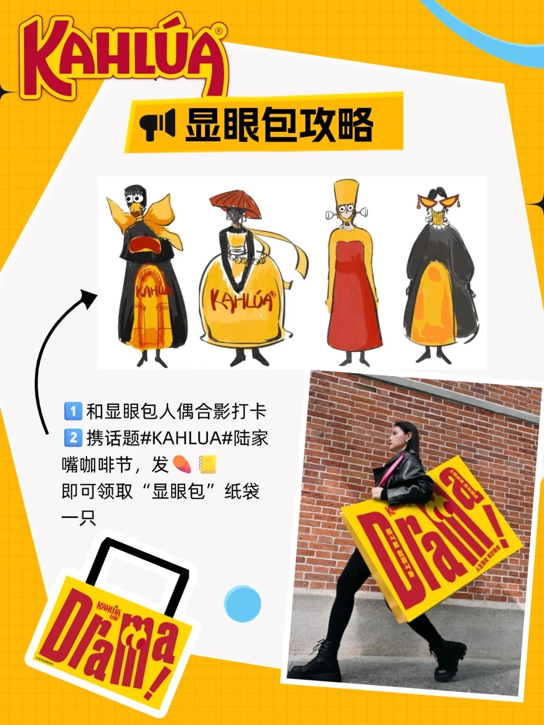 展位设计超 Drama,黄红配色巨吸睛,还有穿酒瓶造型连体服的 “Kahlúa Queen” 显眼包人偶,和它合影发,能领“显眼包”!现场买咖啡马天尼还能抽盲盒,有机会 get 免费特调酒券!手慢无!🎁限量,记得早点去噢!