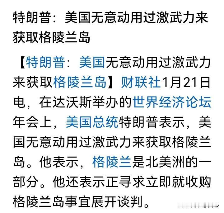 特朗普到了瑞士达沃斯,在世界经济论坛的年会上大战群儒,教会他们地理课,格陵兰岛还是属于北美洲的呢,只是我还无意采用过激武力来夺岛。 另一边,德国总理默茨的亲信表示,假如美国夺取格陵兰岛,那么我们就抵制2026年世界杯呗。 这就是欧洲。让我想起了动物世界里,最大的鹰(角雕)捕杀树懒时,树懒挥动手臂的,懒洋洋地激烈反抗……