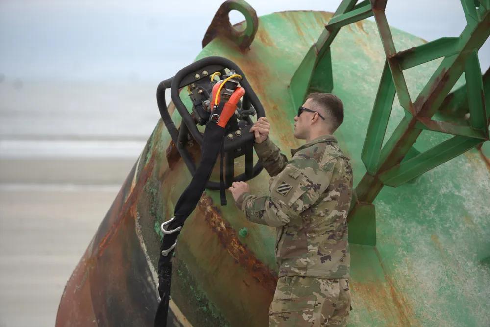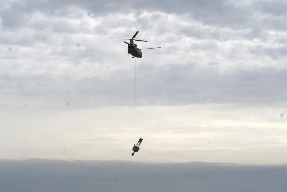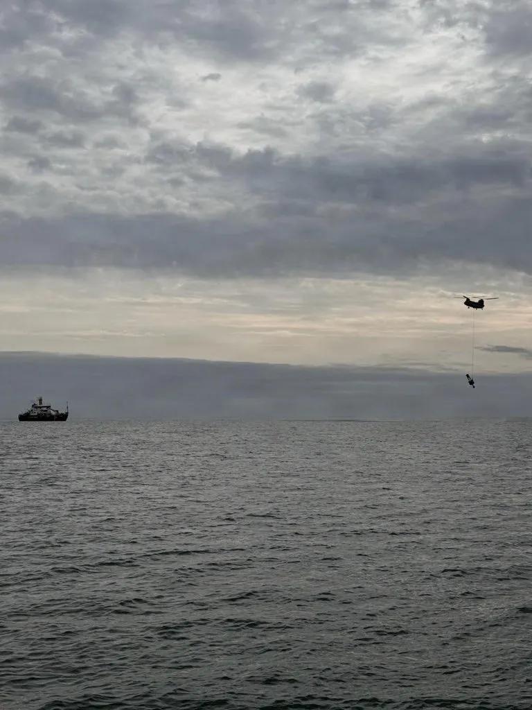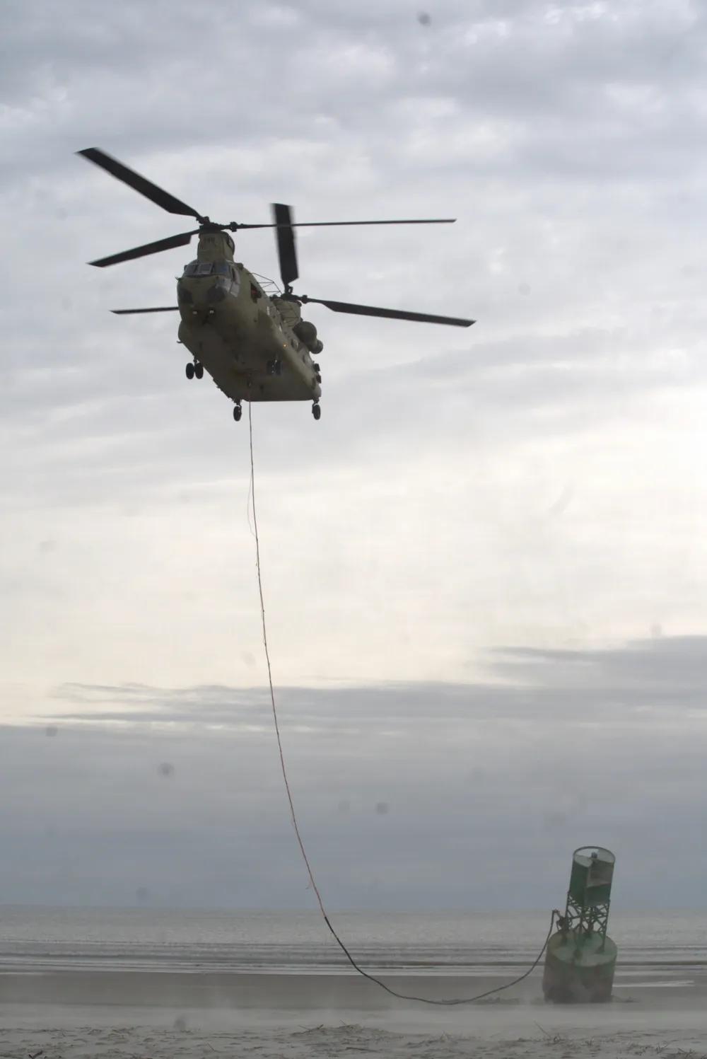 美军CH-47支奴干直升机已经成为军民两用的“利器”。 海岸警卫队巡逻舰玛丽亚·布雷号的船员于2026年1月14日在佐治亚州坎伯兰岛近海水域打捞一个带灯浮标。一架美国陆军CH-47支奴干直升机将浮标从邓吉尼斯海滩吊起,并将其移至离岸一英里处,由玛丽亚·布雷号巡逻艇船员回收进行维护。