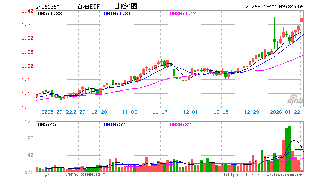 1月22日,石油ETF(561360)开盘涨1.04%,报1.356元。石油ETF(561360)重仓股方面,中国海油开盘涨0.95%,中国石油涨0.80%,中国石化涨0.34%,杰瑞股份涨0.00%,招商轮船涨0.00%,广汇能源跌0.39%,中远海能涨0.00%,恒力石化涨0.87%,招商南油涨0.00%,海油工程跌0.79%。