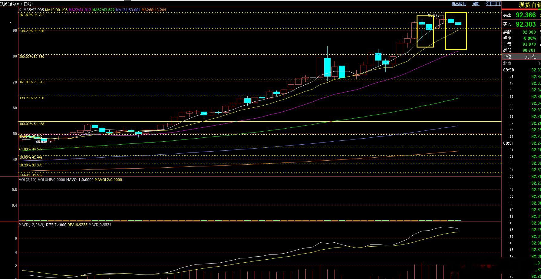 早盘 现货白银 和期货白银 都形成了小幅快速下跌,看似跳水状态,但短线下跌并不深。日线图上10日均线还没有破位。我这里要问的是:图中的 十字星 大家如何解读?白银跳水