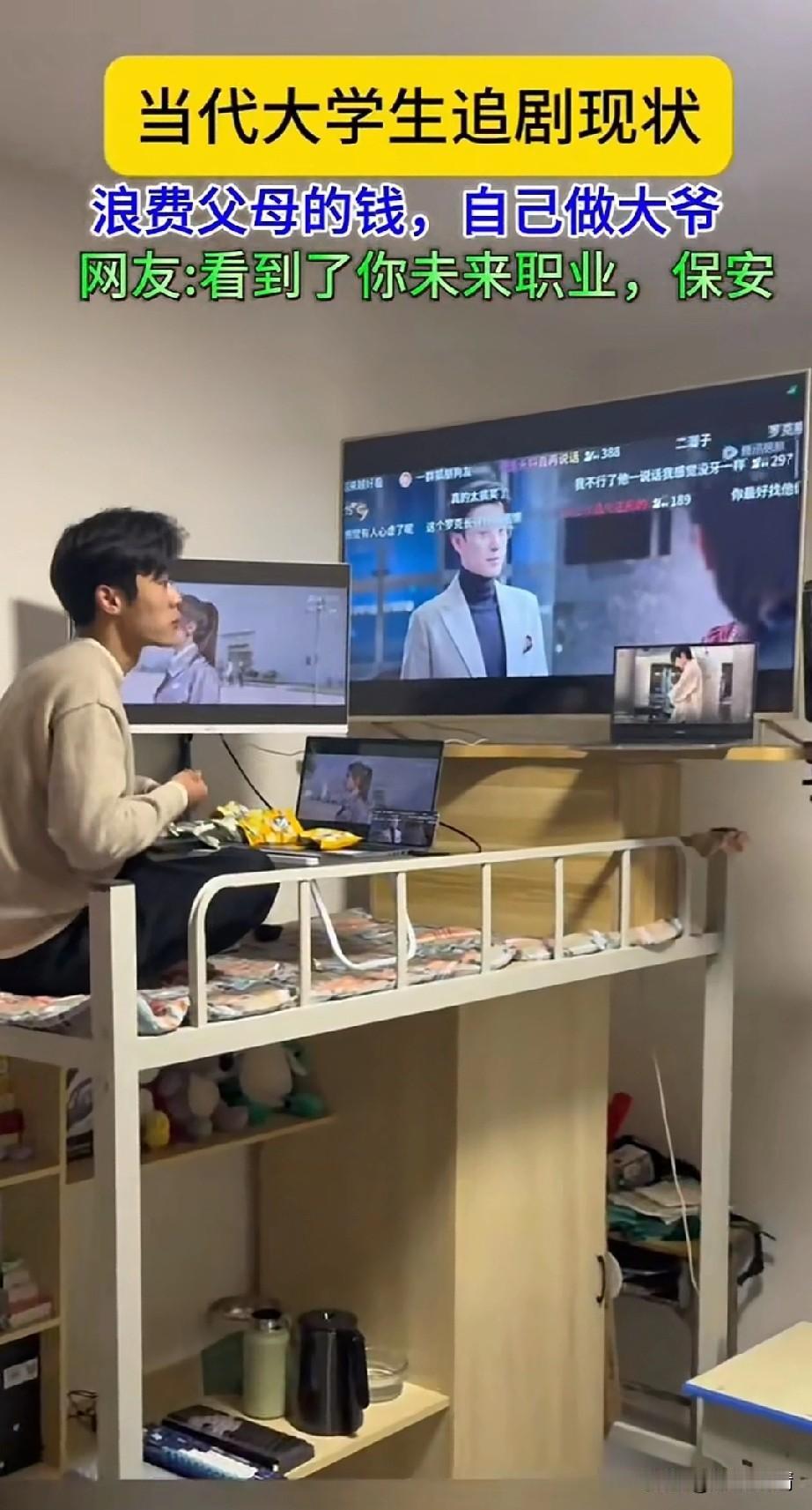 小伙子的大学生活火了,因为他在自己的床上设置了环绕声! 他在床上面吃着零食,看着电视剧,直接将他的室友给逗笑… 室友透露这个人平时非常懒,看他长得那么帅气,这些只是表面现象,平时多让室友给他带饭! 除了谈谈女朋友,基本上也没有啥特长,他自己装的这些大屏幕,就是为了更好的追剧! 网友表示这样的大学生毕业之后可怎么办?还有网友表示这就是天生的监控身体! 拿着父母的钱,在宿舍当大爷!不知道,他的父母看到他火的视频,会不会连夜到学校修理他? 大家觉得个大学生的日常好玩吗? 当代大学生日常 大学学习氛围 睡眠氛围 男大学生活日常
