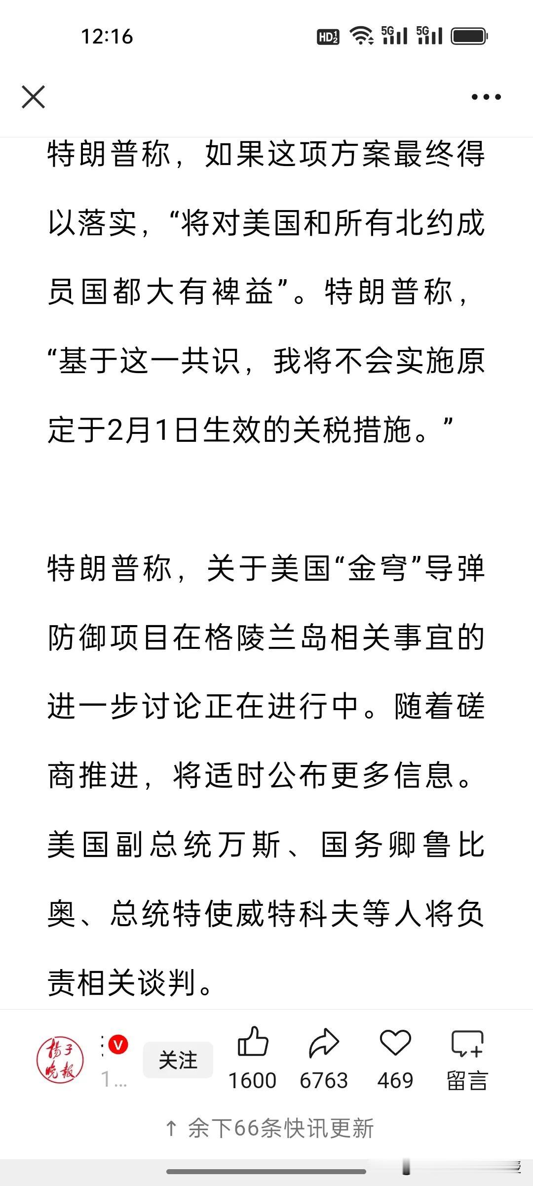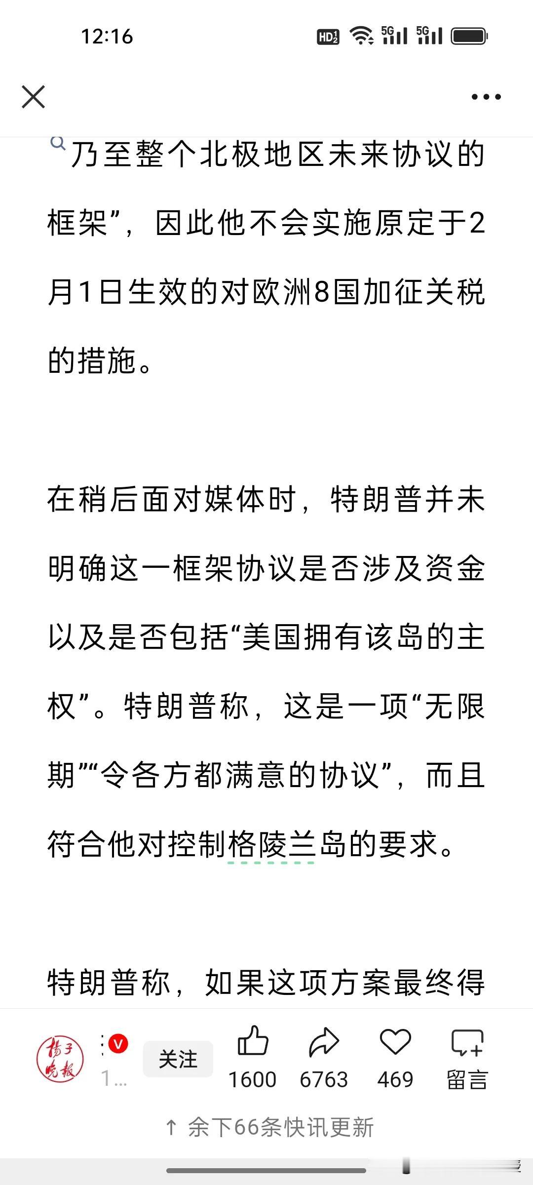 现在全世界都很好奇,特朗普跟北约秘书长吕特到底达成什么协议,能让特朗普不动用武力就得到格陵兰岛的控制权,且特朗普对欧洲八国的关税也不加了。特朗普说这项协议对北约各国都有好处。 协议核心大概率是“防务换资源”:美国升级格陵兰岛“金穹”导弹防御系统,北约加码北极军事部署,而美国则锁定岛上稀土、油气等关键矿产。 此前美欧对峙推黄金冲破4700美元,如今协议落地避险情绪退潮,金价应声回调。特朗普这手“以压促和”,到底是北约共赢还是美国独吞红利?反正重仓黄金的华尔街大佬们在这几天确实又赚翻了。谁让特朗普是画k线的呢?[捂脸]