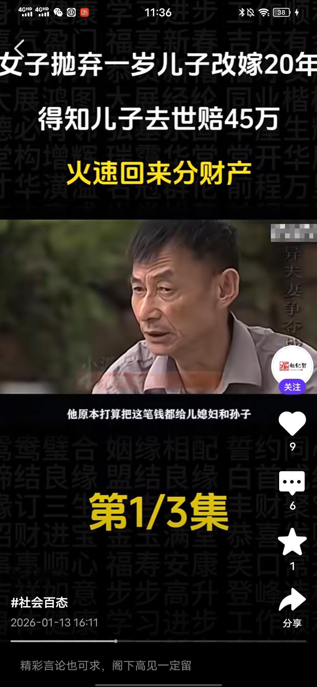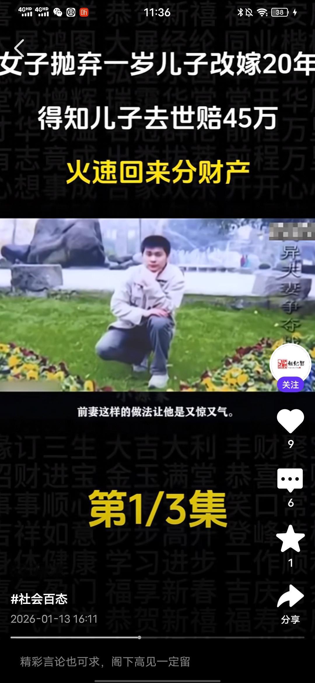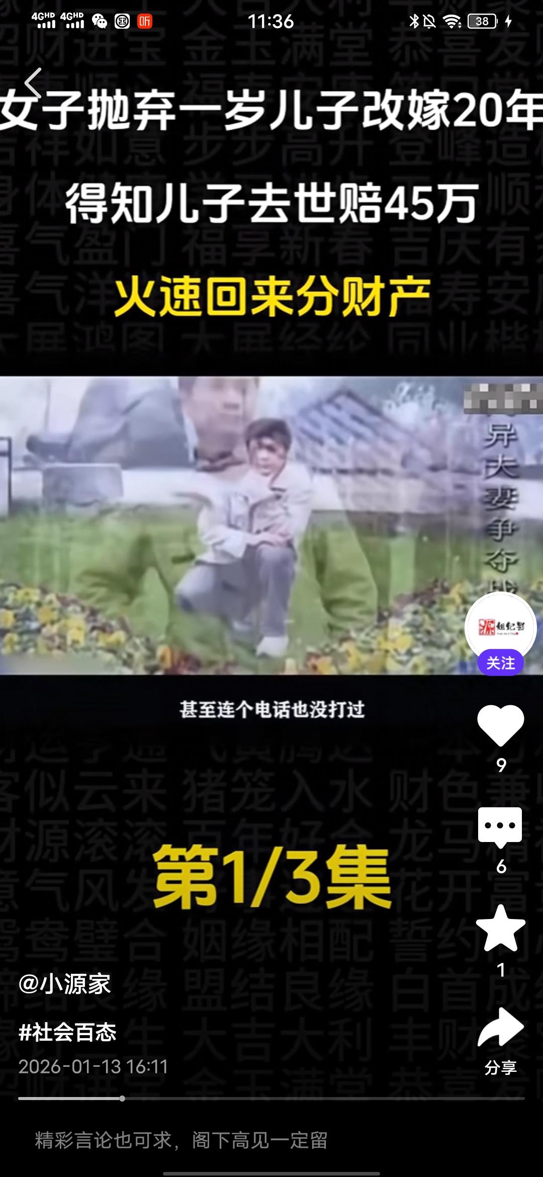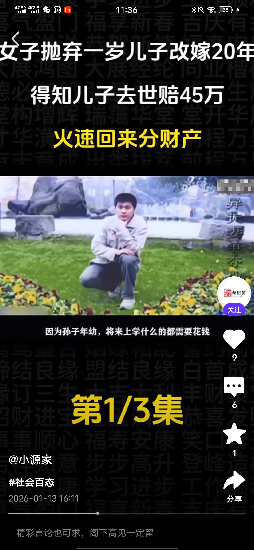 气死我了,真想骂她几句好的! 刚在一个媒体平台看到一个真人纪实事件,一个女的抛弃一岁儿子改嫁20年,得知儿子意外去世获赔45万,火速回来分财产! 真是恬不知耻,这个抛夫弃子的女人叫徐金蓉,在孩子1岁的时候就跟孩子父亲老陈离婚了,此后就对孩子不闻不问,如今24年过去了,去年儿子意外去世,获赔45万元,知道这个事情的徐金蓉火速赶回来企图分这笔赔偿款。这让老陈十分气愤,这笔钱本来打算留给儿媳和孙子的,孙子还小,以后上学,生活都有要钱。 可是,前妻徐金蓉突然跑回来闹着要分走一半,这打乱了老陈的计划,他认为这笔钱没有1分钱是属于徐金蓉的,结果这徐金蓉居然恬不知耻地将老陈告上法庭,调解席间,老陈变态,最多给她1万,多的一分都不要想,徐金蓉却狮子大开口说至少20万。 老陈气得不行,质问她,儿子在抢救期间,到最后葬礼期间,你面都没露一下,有你这样的母亲?这个徐金蓉却有自己的借口,说的自己有糖尿病,在外地住院,而且,她也表示,她现在赚不到钱,就想着分这笔钱给自己看病,可笑不?就算老陈的儿子在抢救时,或是葬礼时徐金蓉都到了现场,她也没有资格分,人家有老婆,孩子,更重要的是,她在孩子1岁时就离开了,没有尽过抚养的责任,她不配! 后来调解员都说,你这样是在跟孙子抢财产,这徐金蓉居然说,所以以后长大自己挣钱,搞笑不?这人眼里都只有钱,没有丝毫人性和羞耻之心,不要脸的人真的是谁也没有办法!希望最后,法院能给个公正的判决,不要让这姓徐的得逞,不要寒了安守本分之人,扛起责任之人的心,更不要让效仿徐金蓉这样的烂人的人有机会钻空子! 祝愿好人有好报,恶人、烂人有恶报!