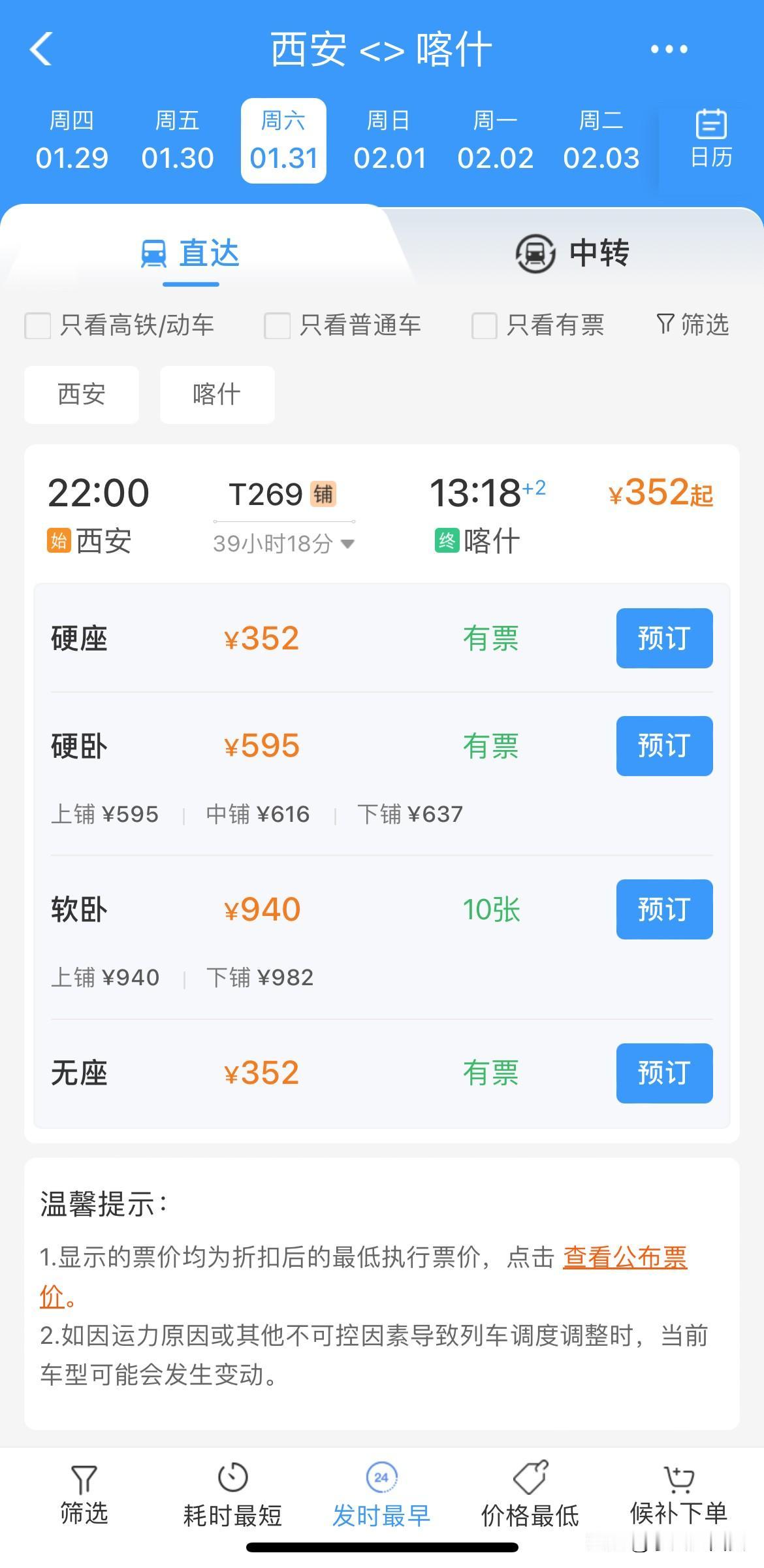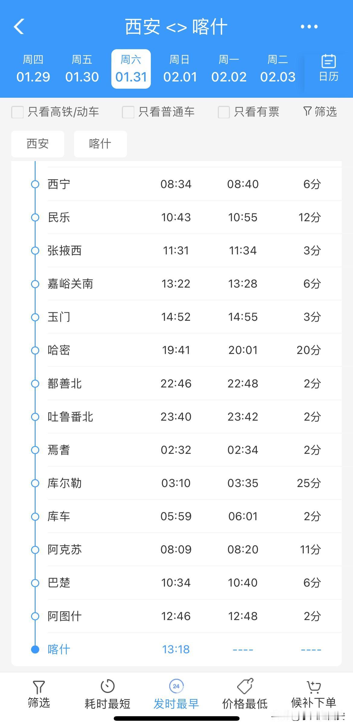 西安站🚉出发距离最远的城市 不是东北的哈尔滨也是西藏的拉萨 而是新疆的喀什 从西安站🚉出发到喀什 T269次特快列车全程运行39小时 18分,跨越甘肃兰州、青海西宁、 甘肃张掖、嘉峪关、玉门、 新疆库尔勒、阿克苏、终点站喀什, 全程票价硬座352元 硬卧595元 软卧上铺940元 这趟列车目前是西安站运行距离 和运行时间最长的列车🚇。 列车开往新疆
