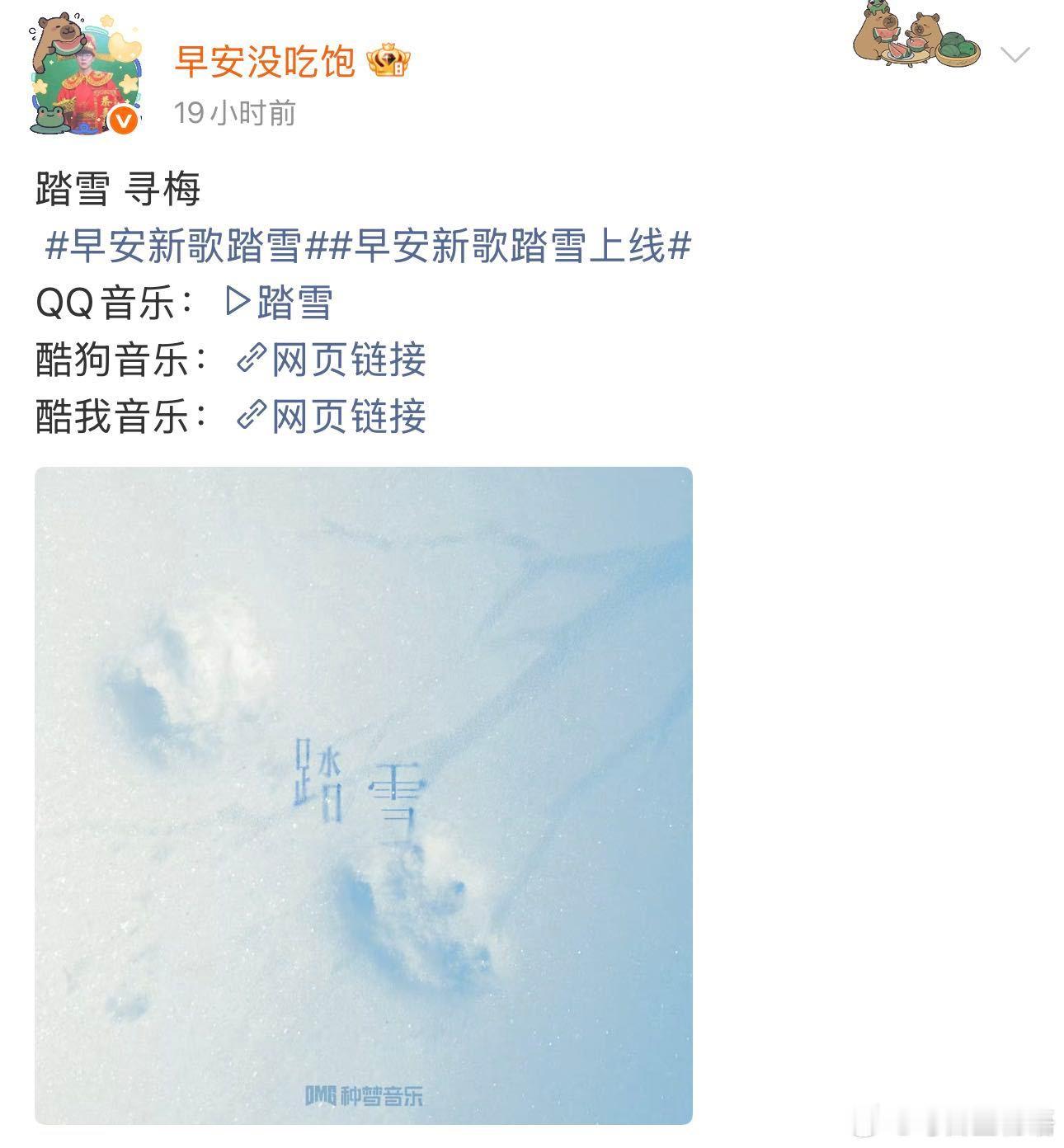 原来早安的新歌是写给流浪猫的 真的请大家去听听的新歌《踏雪》这首歌是以小猫的视角来叙事的,听到最后真的会憋不住,早安也是爱猫猫的人,希望所有小可爱都能度过这个冬天早安新歌踏雪