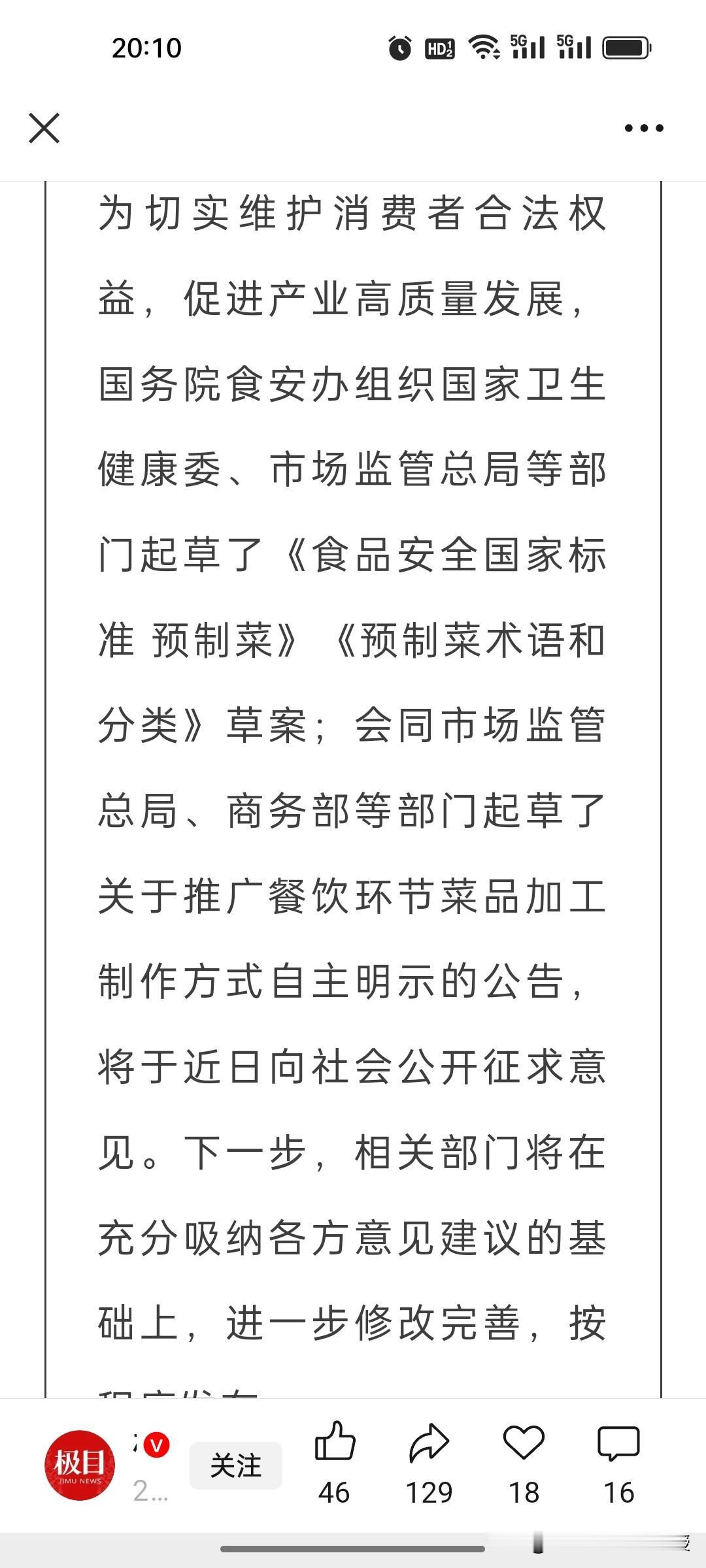 预制菜国标征求意见来了!西贝和罗永浩的口水战终有标尺! 西贝贾国龙和罗永浩从去年九月一直吵到今年的关于预制菜口水战,终于等来了“标准答案”。 罗永浩怒喷西贝“预制菜卖高价割韭菜”,西贝急着撇清“我们不是预制菜”——吵到最后,大家发现根本问题是“到底啥是预制菜”全凭商家一张嘴。 现在国标征求意见稿一出,终于给“预制菜”下了明确定义,连菜品加工方式都要求主动明示。以后再没有模糊空间,企业不能再打擦边球,消费者也能拿着标准去点菜。 这不仅是给行业立了明确的规矩,更是把知情权真正还给了餐桌前的每个人。事关预制菜国家标准 官方征求意见