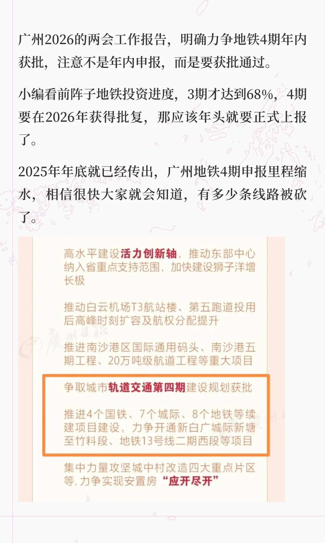 广州两会工作报告,争取地铁4期年内获批