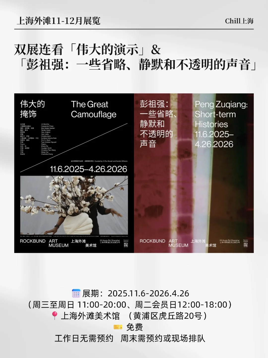 ✅一般都是傍晚闭展,宝子可以白天看完展,晚上去外滩观景,或者在外滩找个风景好的餐厅欣赏上海夜景!对了! 记得穿一双舒服的👟!