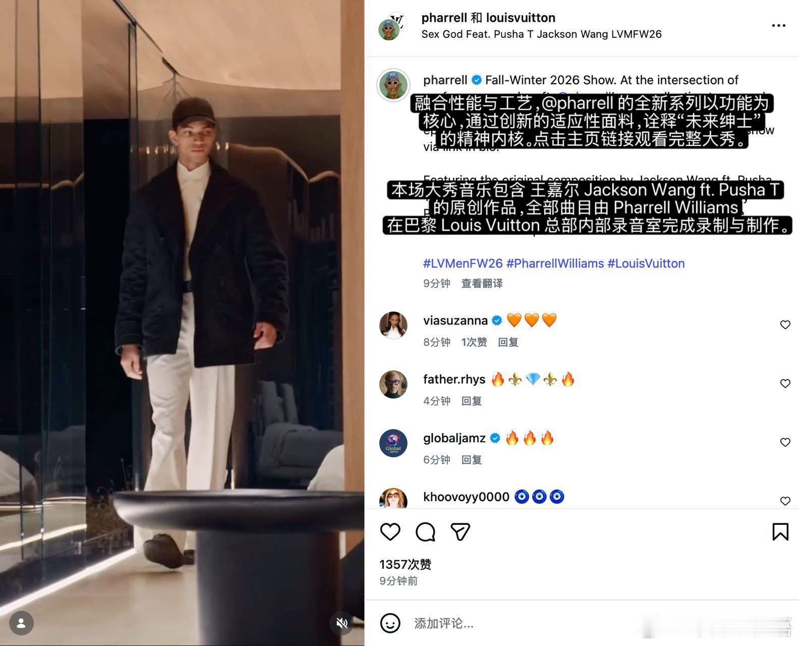 王嘉尔菲董巴黎合作曲 顶级联动来了!即将发行的新歌《Sex God》作为BGM在巴黎秀场播放,该曲由合作过Rihanna、Beyoncé的菲董Pharrell Williams亲自制作,合作过侃爷Kanye West的顶级嘻哈歌手Pusha T倾力助阵。和菲董合作从BBC潮牌联名到现在音乐深度合作,也期待着他们的合作会进入到下一个新的阶段
