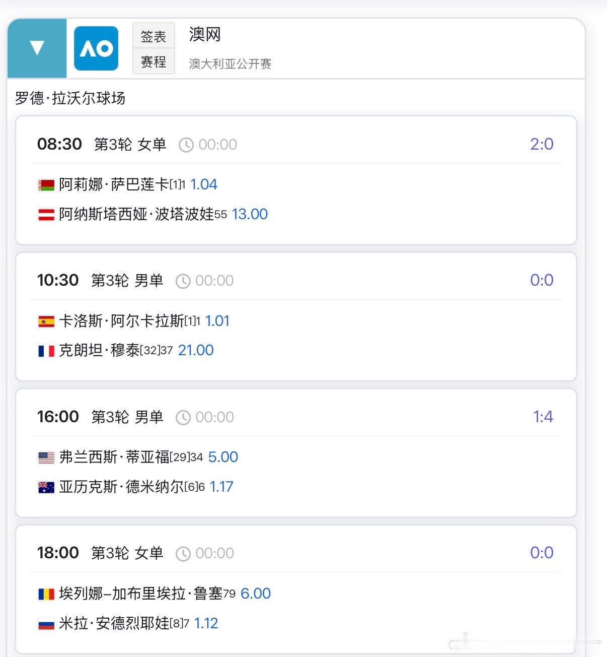 🔵澳网2026 1月23日焦点赛程09:30 🇨🇳徐一璠/杨钊煊vs【1】🇨🇿斯尼亚科娃/🇺🇸汤森德又是第二轮打头号种子也是没谁了要一起看下这场双打吗?单打方面萨巴伦卡、阿尔卡拉斯、高芙、安德列娃等轮番出战,也可以关注下😊中国网球