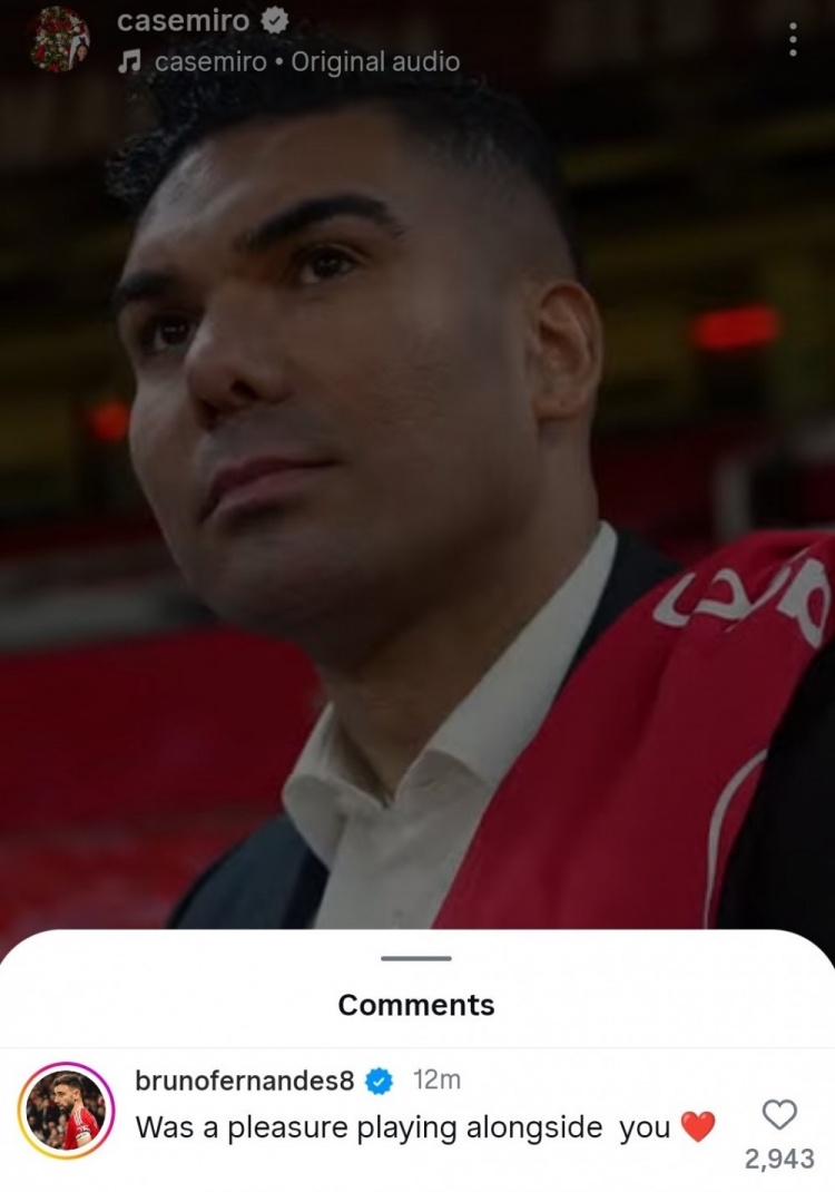 好搭档!B费现身卡塞米罗社媒评论区:很高兴和你并肩作战