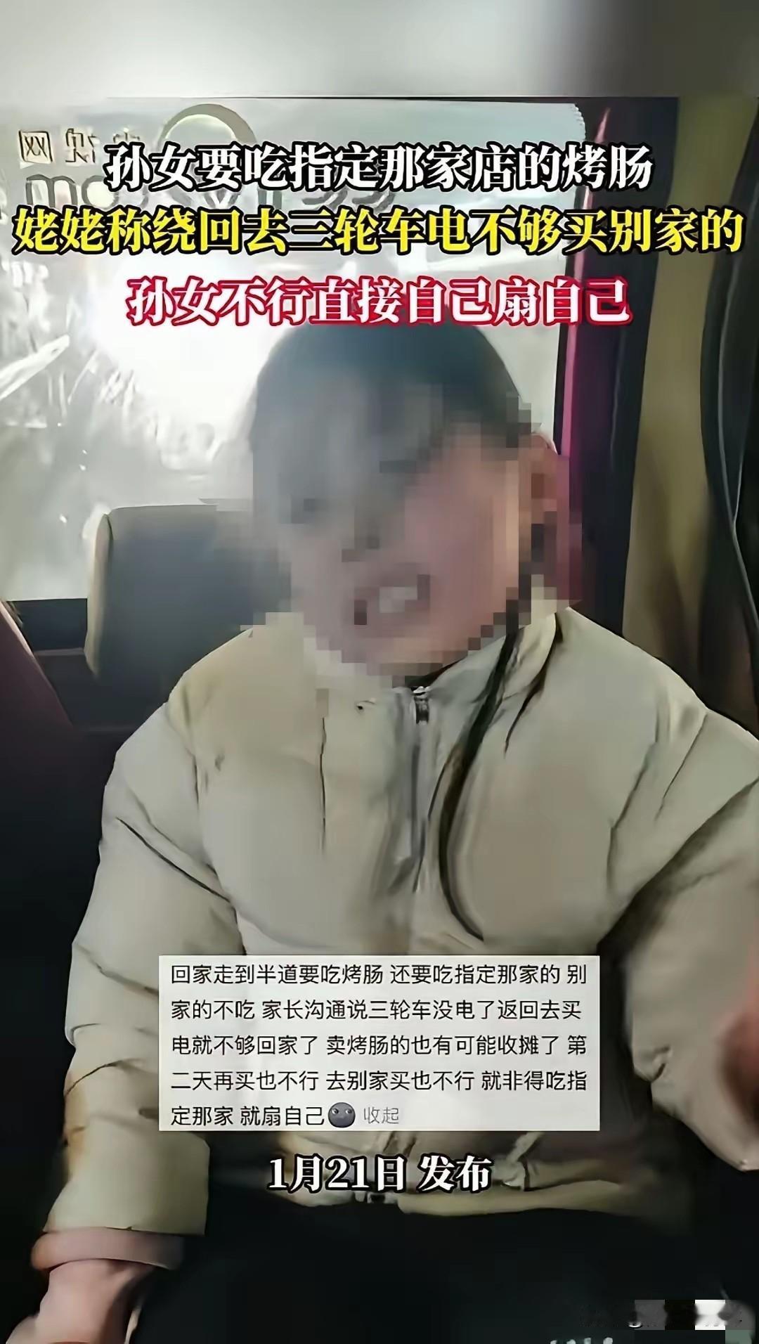 “决不手软”!一网友发布视频,姥姥接外孙女放学回家,孙女半道上想吃烤肠,还指定必