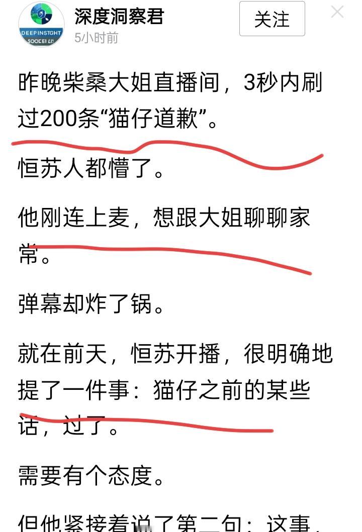 歪曲事实,原来有McN参与 昨天刷到几篇条文,内容都是捧主播歪曲猫仔的。 我很是诧异,按道理说,主播做事值得表扬,但他通过做事获取到了利益,可圈可点。 猫仔线下做了更多事,无欲无求,自掏腰包,这样纯粹的人,却被人歪曲,到底哪里出了问题? 仔细观察发现,作者碎光里,韩知许,深度观察君,都来自MCN。 原来,这几篇文章的作者是McN机构的,怪不得主播在直播间里说让猫仔等着挨文字作者的批吧。 这个时候,McN的人出动捧高踩低,猜测有两种情况。 一,是不是对面的人出动雇佣,借势打掉猫仔,或者挑拨离间,制造混乱。 二,这几个条主并非关注二八的人,如果主播和他们没有联系,会平白无故的捧主播歪曲猫仔吗?