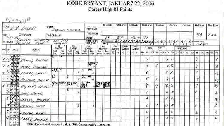 81分计分表、现场技术统计大屏、得分分布图、数据统计单、全版报道报纸、比赛用鞋💜💛20年前的今天上帝穿上了8号球衣科比81分20周年