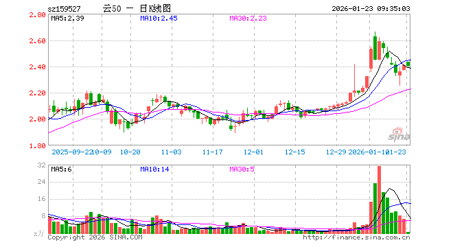 1月23日,云计算ETF广发(159527)开盘涨1.16%,报2.433元。云计算ETF广发(159527)重仓股方面,科大讯飞开盘涨0.96%,金山办公涨0.01%,新易盛跌0.94%,中际旭创跌1.13%,浪潮信息涨0.17%,中科曙光跌1.00%,紫光股份涨0.23%,恒生电子涨0.59%,润泽科技涨0.33%,拓维信息跌0.54%。